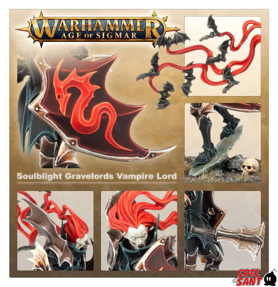 Quintessential leaders for a Soulblight Gravelords warband, Vampire Lords are everything one afflicted by the Soulblight curse aspires to be. Capable of smashing aside entire units of lesser soldiers just as easily as they weave the deathly magics of Shyish, the true power of these consummate warriors lies in their command of the shambling hordes that march with them. By unshackling the bestial rage that drives their unnatural thirst for blood, nearby mobs of skeletons and zombies find themselves invigorated to unseen heights of violence.