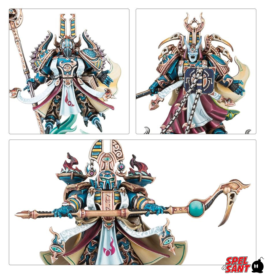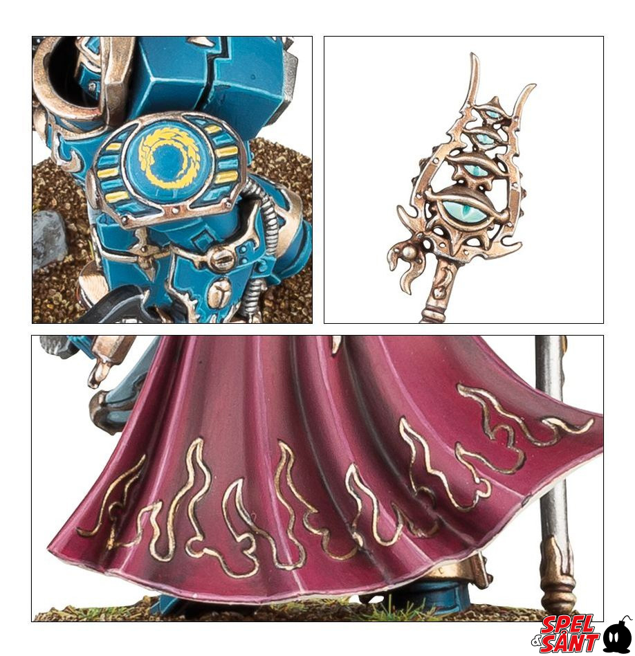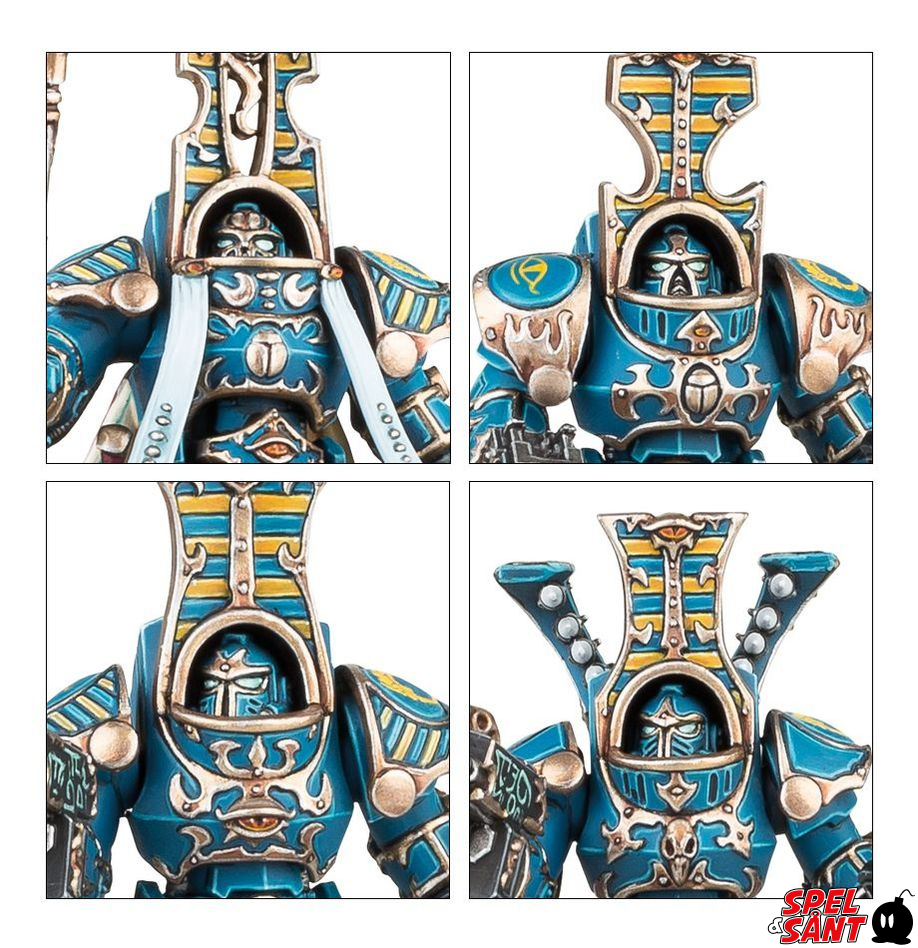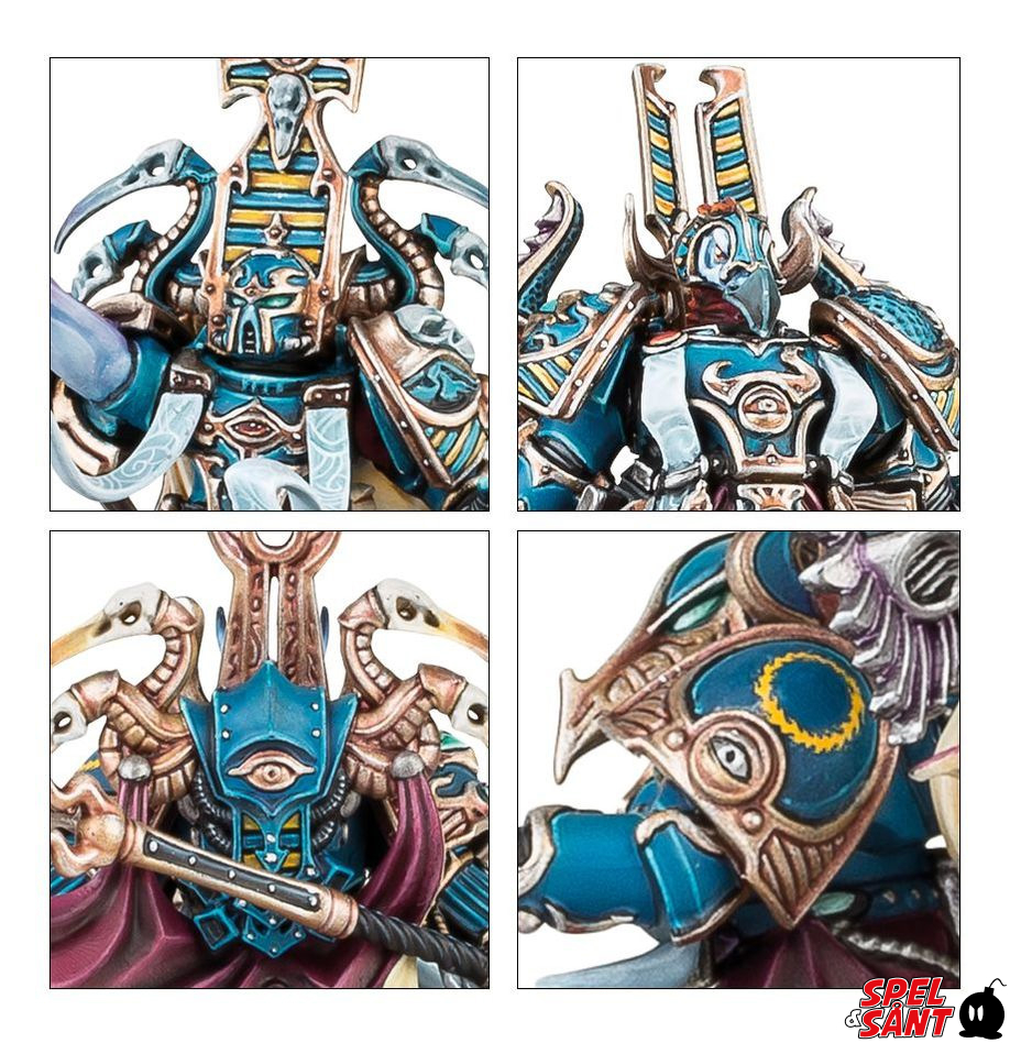 The Sorcerers of the Thousand Sons command their troops with the skill of a puppet master, moving them across the battlefield like so many pieces on a board only they can see. Rubricae, both clad in ornate power armour and heavy Terminator battle plate, march in lockstep alongside towering Sekhetar robots, infernal constructs wreathed in potent spells.