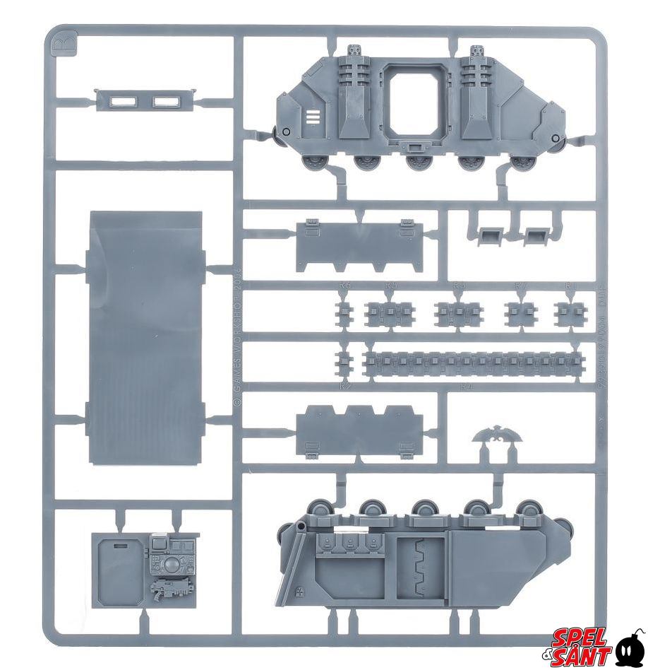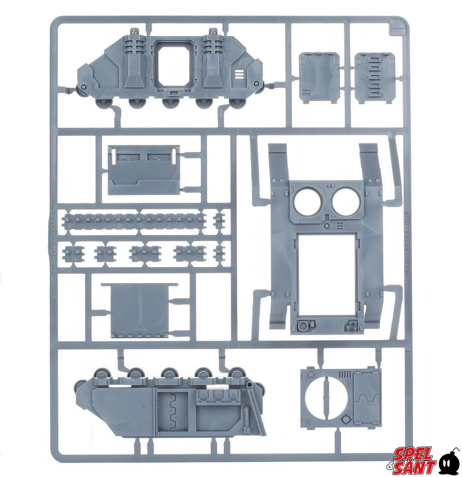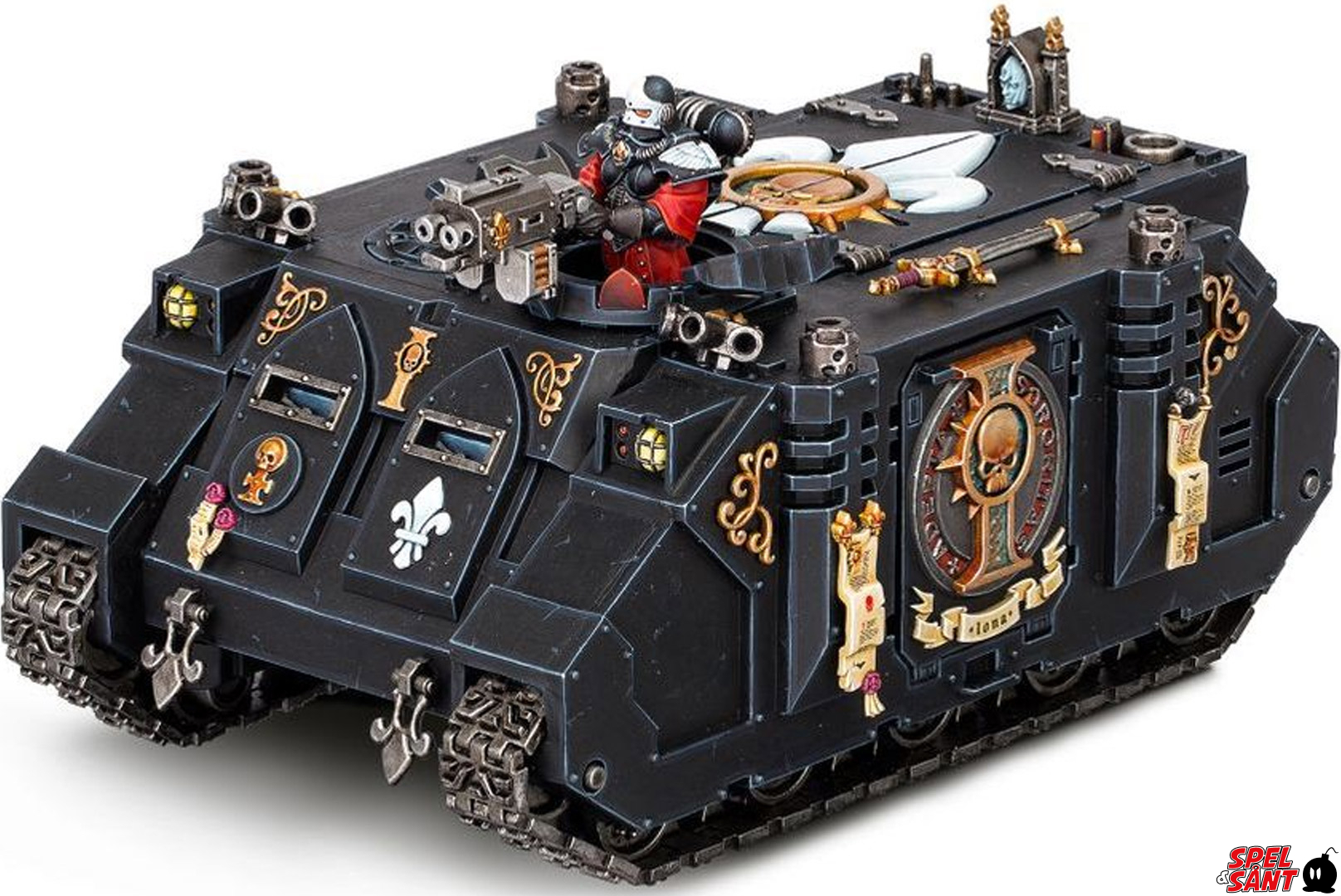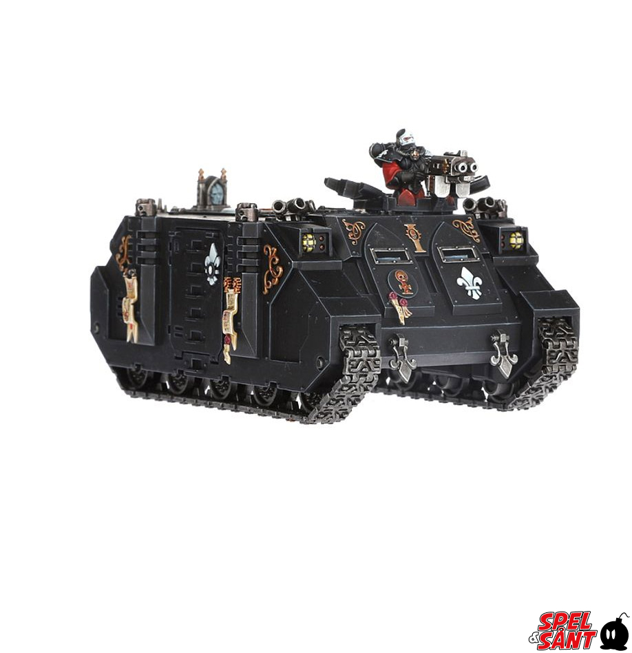 The Rhino armoured personnel carrier has been a mainstay of the Imperial military forces since the earliest days of the Great Crusade. Fashioned from a Standard Template Construct, Rhinos are exceptionally durable, robust and easy to operate. The Rhinos used by the Militant Orders are magnificently decorated with filigree and holy icons. Applied and maintained by masterful artisans, these embellishments honour the machine spirit of each Rhino and celebrate its role as a deliverer of the Emperor's divine judgement.