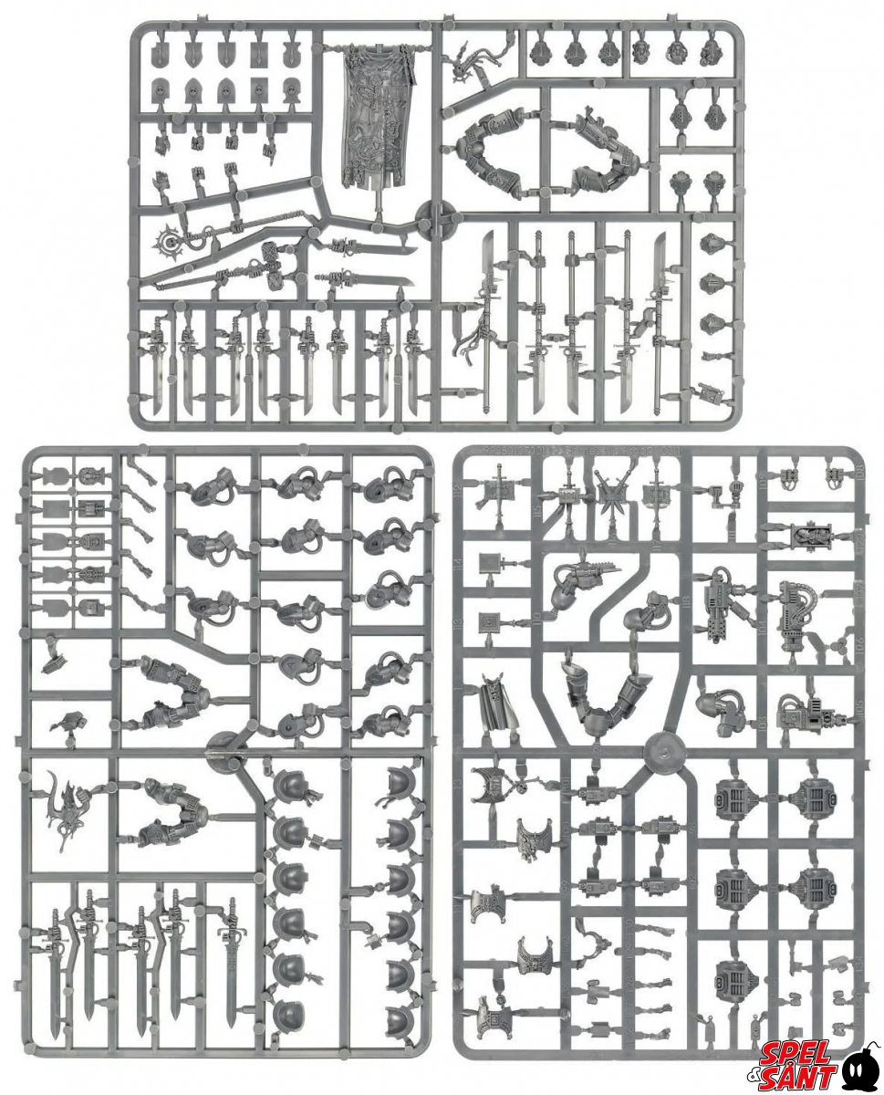 This multi-part plastic boxed set contains 153 components and five 40mm round bases with which to make either a Grey Knight Terminator Squad or a Grey Knight Paladin Squad. There is an array of weaponry and unit upgrades including Nemesis falchions, Nemesis force halberds, a Nemesis Daemon hammer, a Nemesis warding stave, a psycannon, a psilencer and an incinerator. This kit is unpainted and requires assembly - we recommend using Citadel Plastic Glue and Citadel Paints.