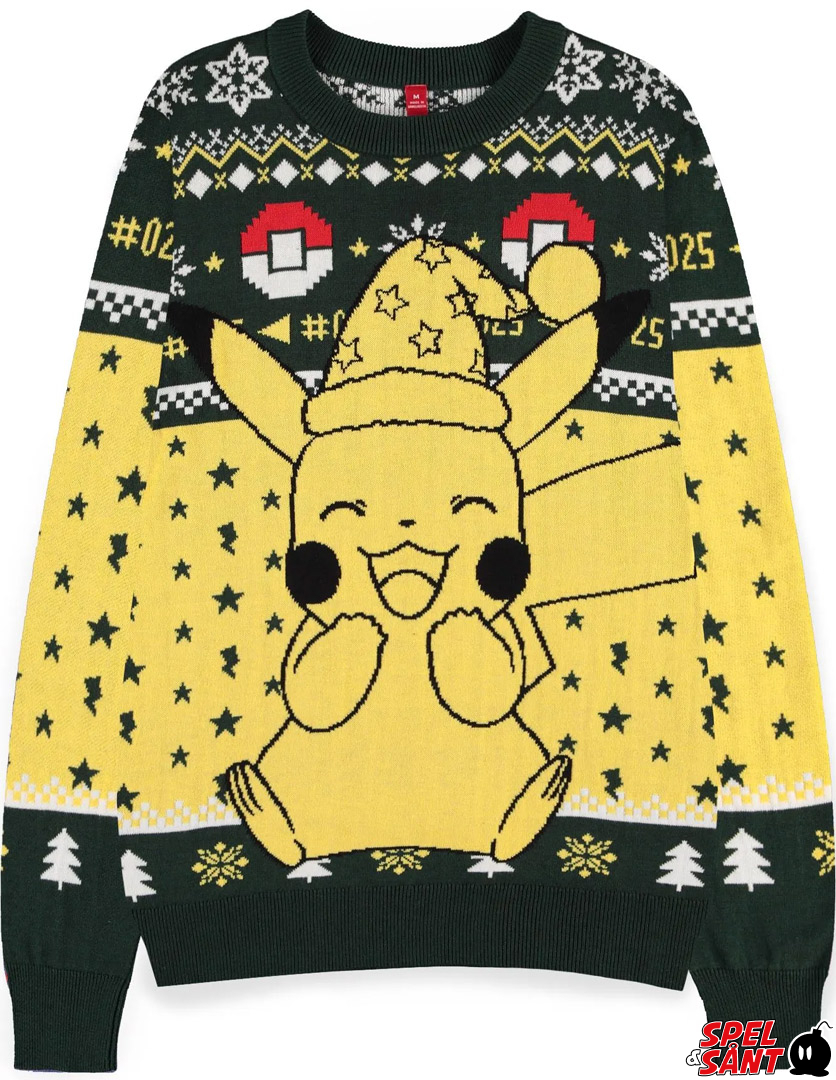 Officiellt licensierad Stickad Nintendo Tjocktröja med Pikachu i jultema tryck på i storlek Medium.