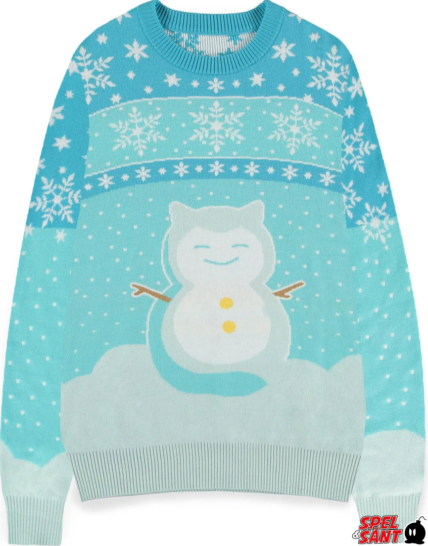 Officiellt licensierad Stickad Nintendo Tjocktröja med Snorlax snögubbe och pikachu i jultema tryck på i storlek Extra Large.