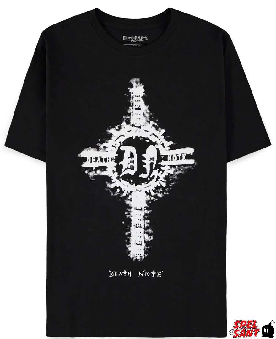This sleek black cotton t-shirt has a very distinct front graphic that will catch the eye of your fellow Death Note fans. The screen-printed graphic of the Death Cross is water-based and has a soft hand feel.