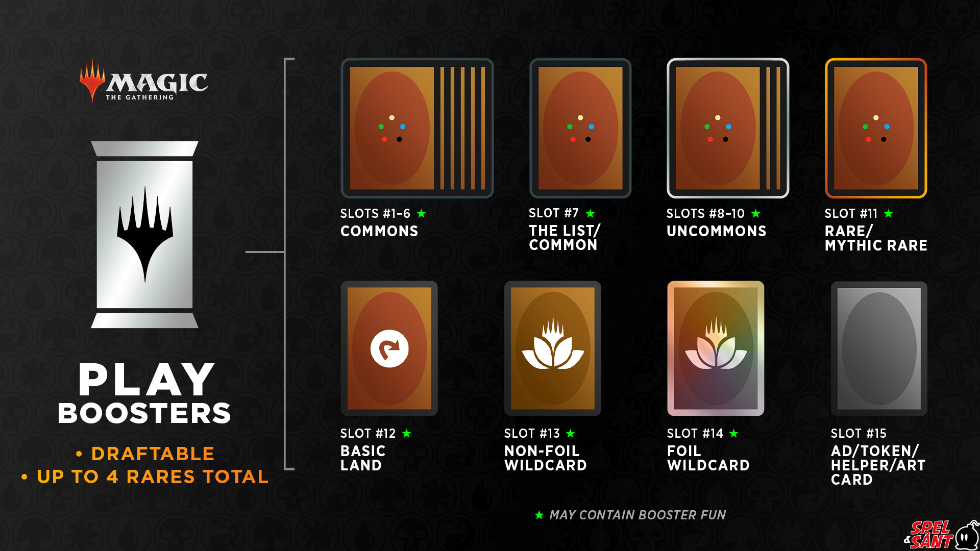 There was once a time when fans had to choose—buy Draft Boosters to play with friends or buy Set Boosters that could contain more Rares, cool treatments, and fun bonuses. Those days are gone. Introducing: Play Boosters, the booster with all the thrilling possibilities of a Set Booster and the balanced play of Draft Boosters! Why choose?