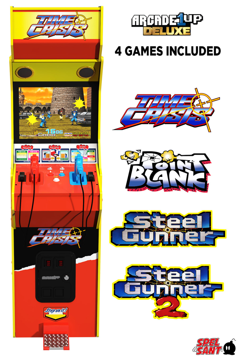 And that’s not all! Along with TIME CRISIS, this 4-in-1 machine includes arcade classics such as Point Blank™, Steel Gunner™ and Steel Gunner 2™. No quarters required!