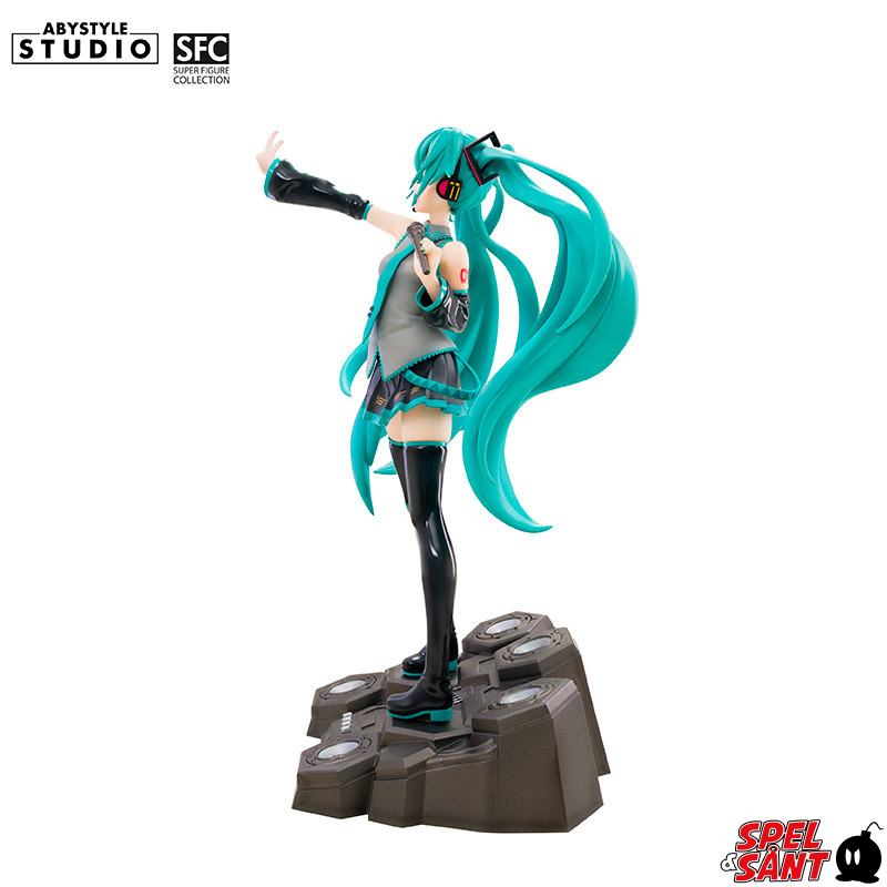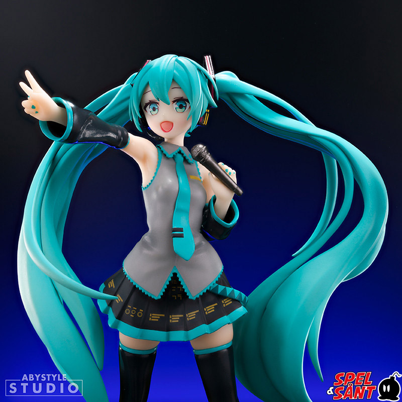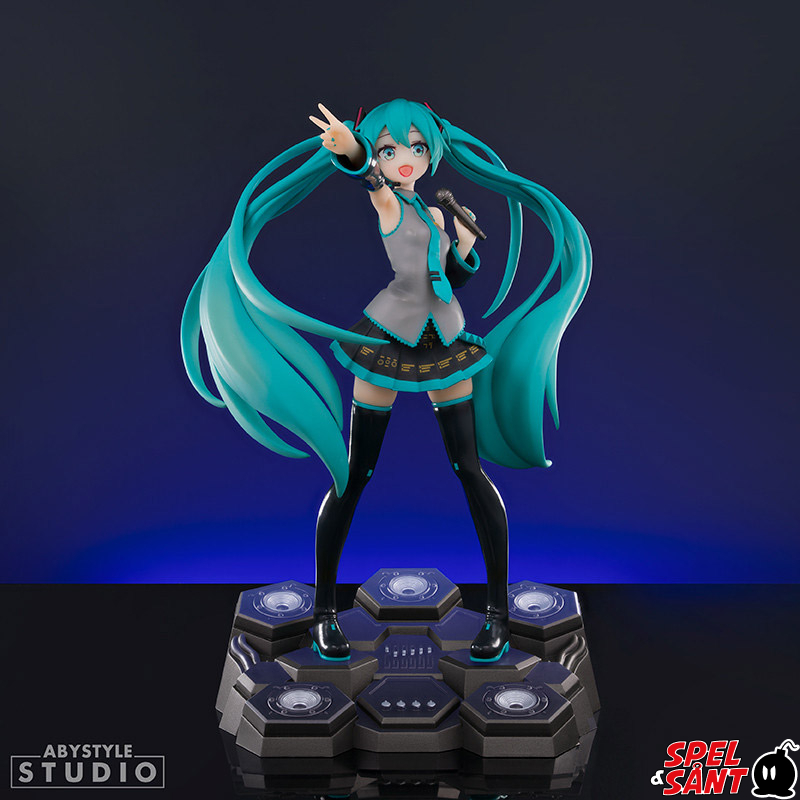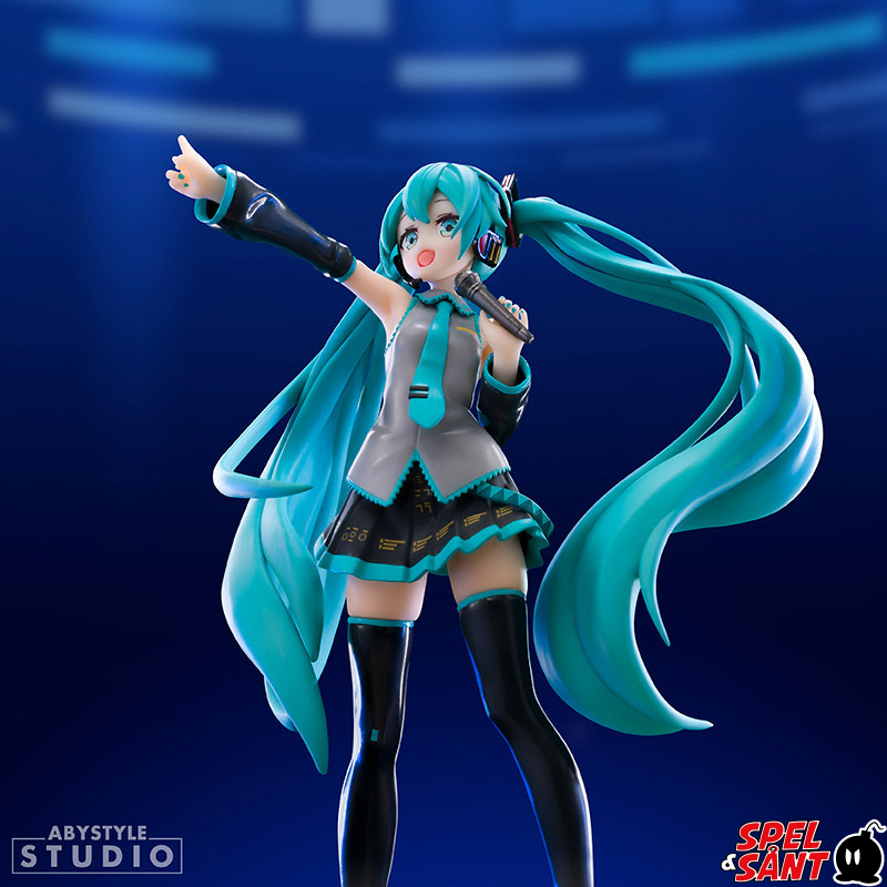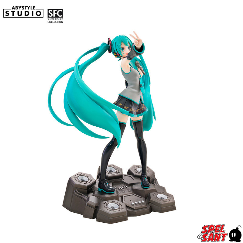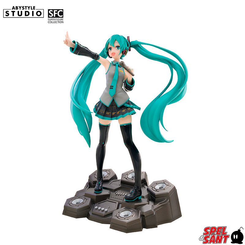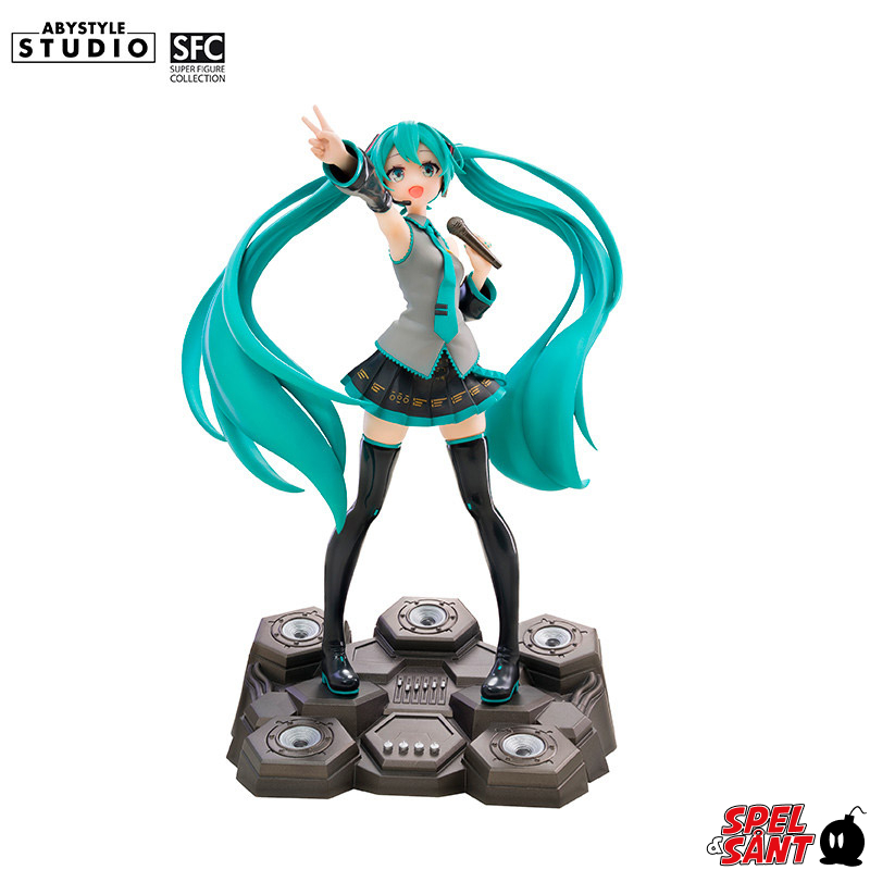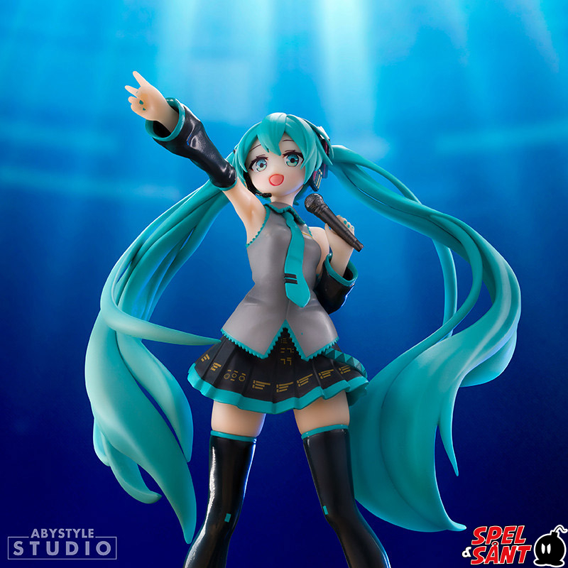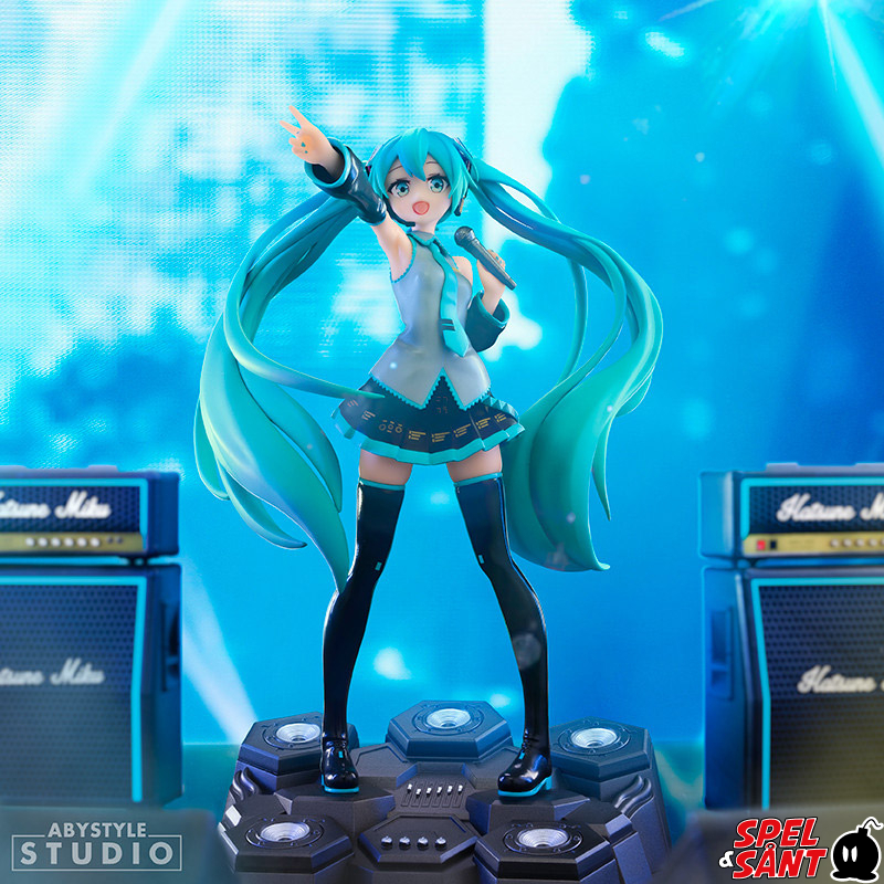 This Hatsune Miku figurine by ABYstyle Studio captures the essence of her energetic performance, standing proudly on a speaker. With a microphone in hand, she seems to be singing her heart out, giving off a vibrant energy. The careful detailing and dynamic pose bring her to life, making her a must-have for all Vocaloid fans. Perfect for displaying on shelves or desks, this figurine will add a unique touch of style to any space.