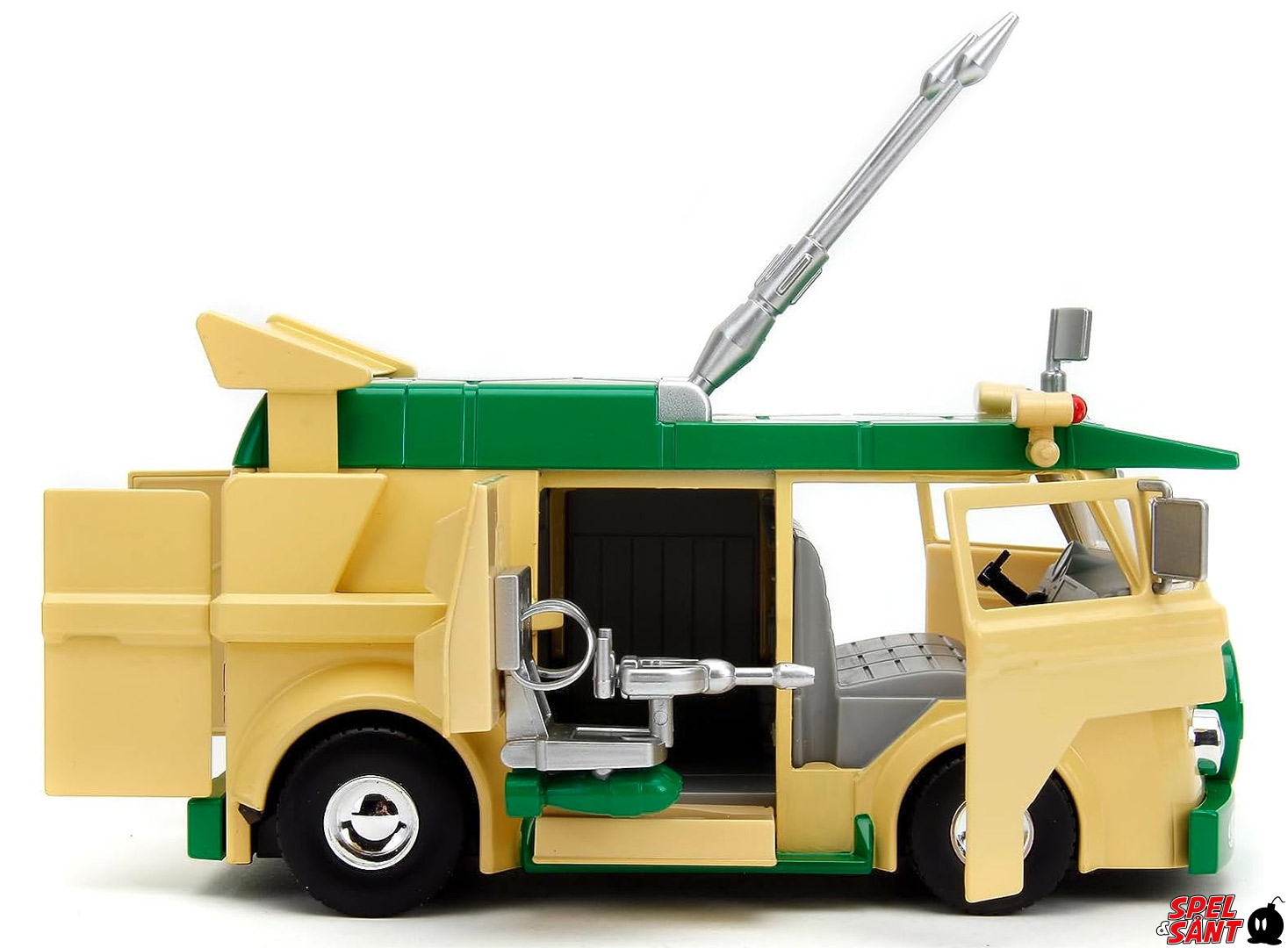 unmatched in detail and quality. Our die-casting method ensures no detail is missed and allows the doors and backdoors to open and close for a better view inside. Enjoy a highly-detailed interior and realistic rubber tyres for a model of supreme quality. Manufactured by Jada Toys using innovative and cutting edge technology, you can be sure that each vehicle is intricately designed and accurately represents the real Party Wagon car from the Teenage Mutant Ninja Turtles franchise.