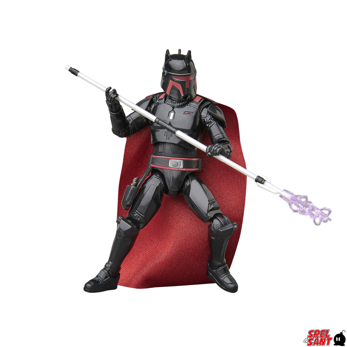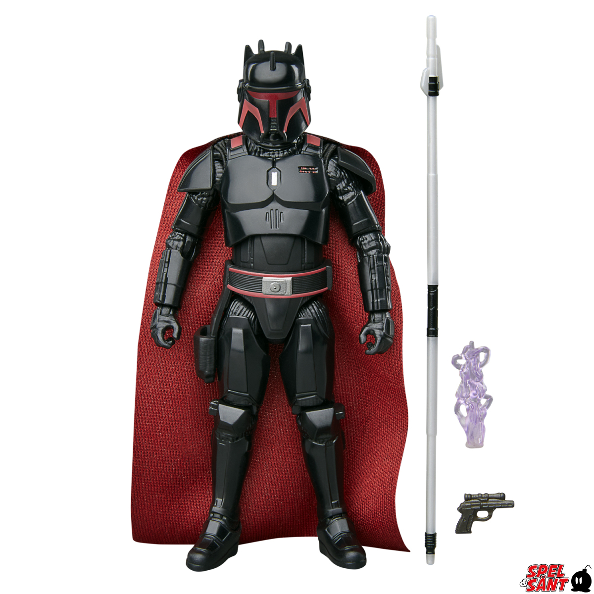 This Moff Gideon (Dark Trooper Armor) figure comes with 3 accessories, including a staff, blaster, and lightning FX