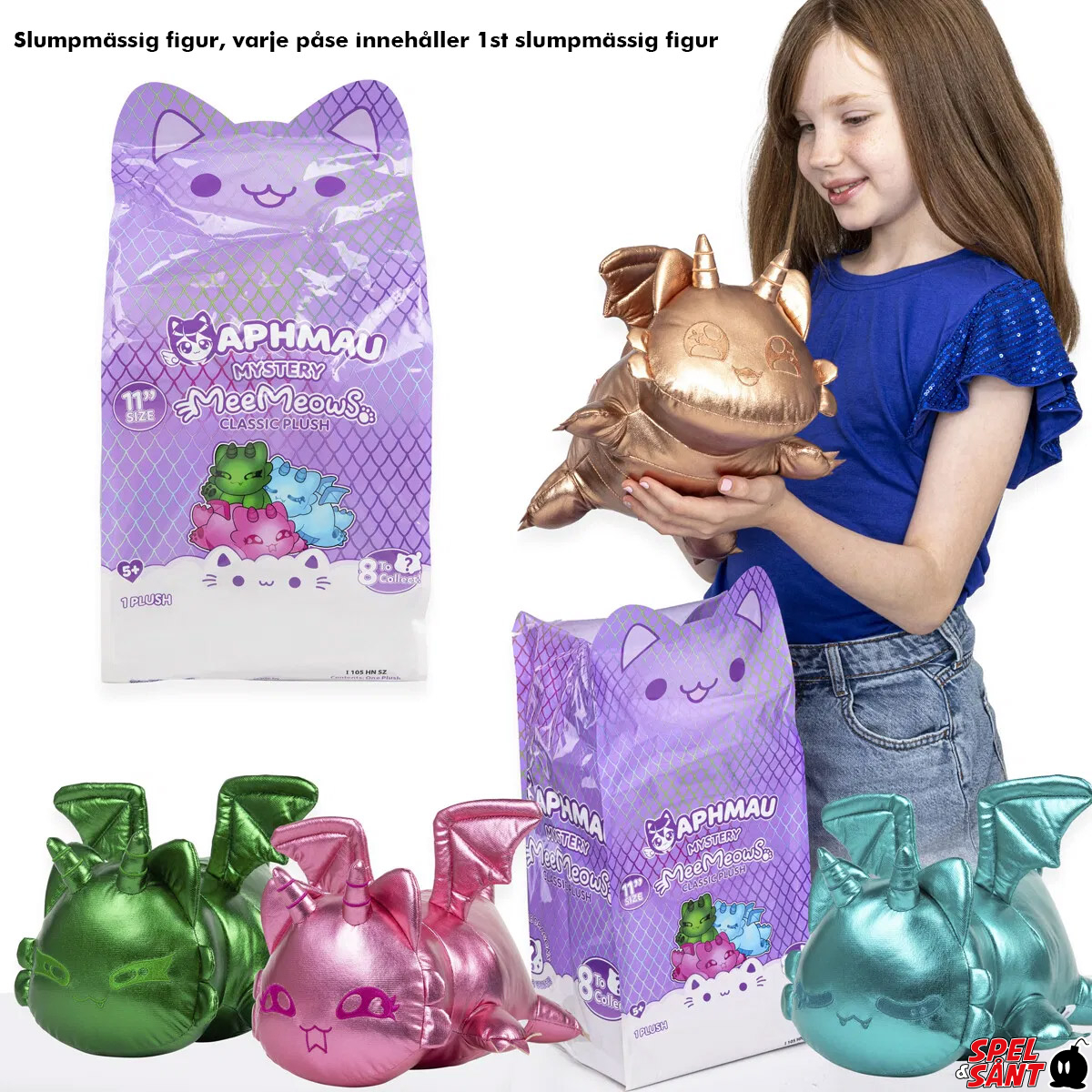 Mega Minecraft YouTuber and female gamer Aphmau has a hoard worth treasuring with her new 11" Dragon Mystery Plushies! These shimmering 11" Mystery Plushies are just like real gemstones–precious and beautiful! Collect all eight: Amethyst Dragon, Jade Dragon, Rose Quartz Dragon, Ruby Dragon, Bronze Dragon, Silver Dragon, and Gold Dragon! With their super soft, huggable bodies and sparkling eyes, these glittering plushies are the perfect treasure for Aphmau fans and plush collectors alike! Collect them all and check out Aphmau's meow-sterful Minecraft adventures on her official YouTube channel!