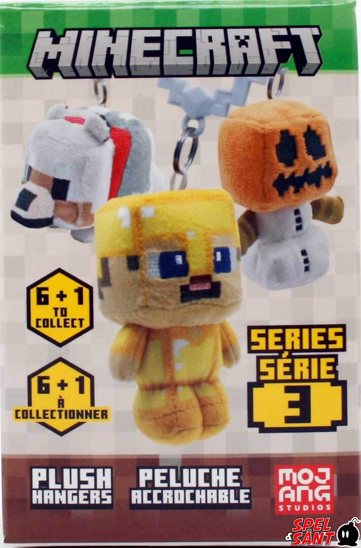 Äventyret fortsätter med de officiellt licensierade MINECRAFT Plush Hangers Serie 3. Varje mysteriepåse innehåller 1 högkvalitativ samlarhängare i plysch med Minecraft-tema, komplett med en praktiskt klemma för att fästa på din väska, ryggsäck eller nycklar. 7 plyschhängare att samla, inklusive en cool Steve Golden Armor-nyckelring. Varje nyckelring levereras i en presentpåse – perfekt för samling, gåva eller bara för att visa din kärlek till Minecraft. Från 10 mnd.