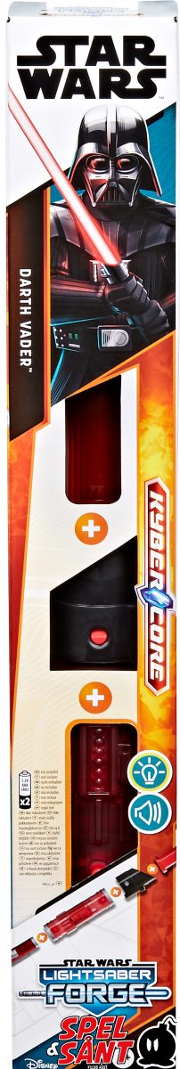 Imagine the excitement and adventure of a galaxy far, far away with the Star Wars Lightsaber Forge Kyber Core Darth Vader Electronic Lightsaber. This kids Lightsaber features character-inspired design, an extendable light-up blade that flicks open, and sound effects inspired by entertainment. Plus, Lightsaber Forge electronic Lightsabers now feature glowing translucent cores inspired by kyber crystals, which are found in every Jedi or Sith's Lightsaber. Use the included blade, cap, cover, and core to create a Darth Vader Lightsaber! And with pieces that are compatible across the entire Star Wars Lightsaber Forge line, kids can mix-and-match to create, customize, and master 1000s of combinations! (Total combinations includes all Lightsaber Forge products. Additional Lightsaber Forge products each sold separately. Subject to availability.) Use this Lightsaber for kids as part of a Star Wars costume, give it as a Star Wars gift for boys and girls, or add it to any fan's collection.