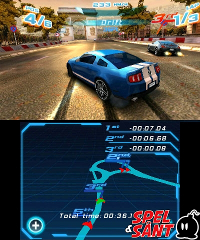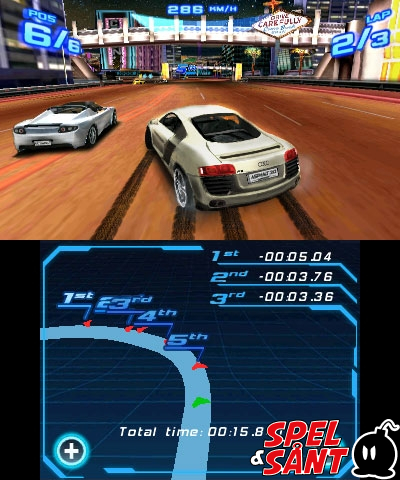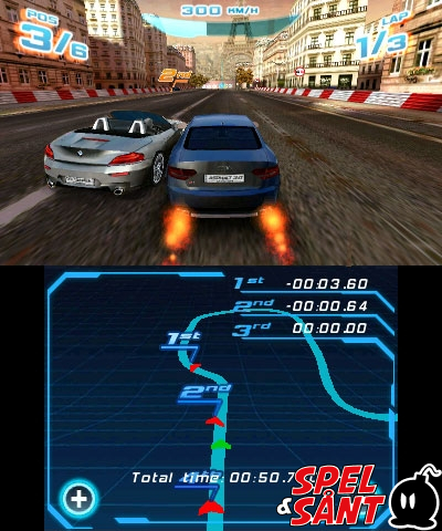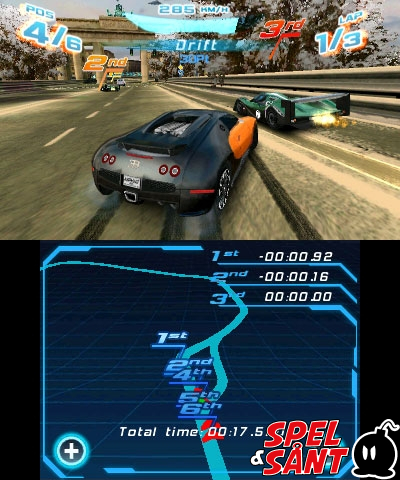 Rik, stereoskopisk 3D-grafik för tävlingarna och även i menyerna. Gameplay är designad till att dra full nytta av 3D-skärmen när du far mellan bilar driftar centimeter från vägkanten och navigera i menyer som kommer direkt ur skärmen.