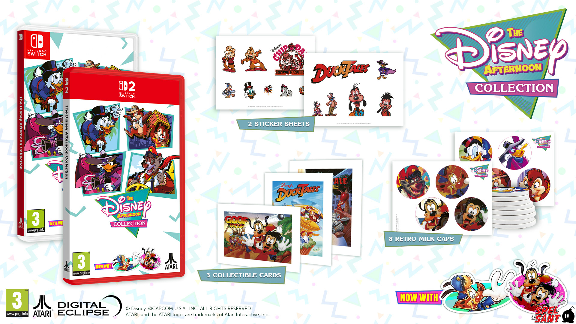 Känner du pirret? Res tillbaka till 90-talet med dina favoritkaraktärer från Disneydags program i denna samling av retro Disney NES- och SNES-spel, nu tillgängliga på Nintendo Switch och Switch 2. Denna exklusiva Switch-uppdatering av den ursprungliga 2017-samlingen lägger till två nya spel – Bonkers och Goof Troop – till line-upen, för totalt åtta spel, inklusive DuckTales 1 & 2, Chip ’n Dale: Rescue Rangers 1 & 2, TaleSpin och Darkwing Duck. Detta är första gången Goof Troop och Bonkers släpps igen någonstans.