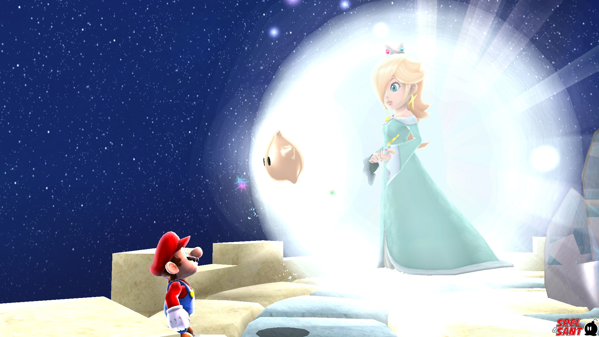 Mario räddas snart av det nyfikna stjärnbarnet Luma och tas med till kometobservatoriet, där den mystiska kvinnan Rosalina bor. Tillsammans ger de sig iväg över stjärnorna för att rädda prinsessan Peach och stoppa Bowsers onda plan!