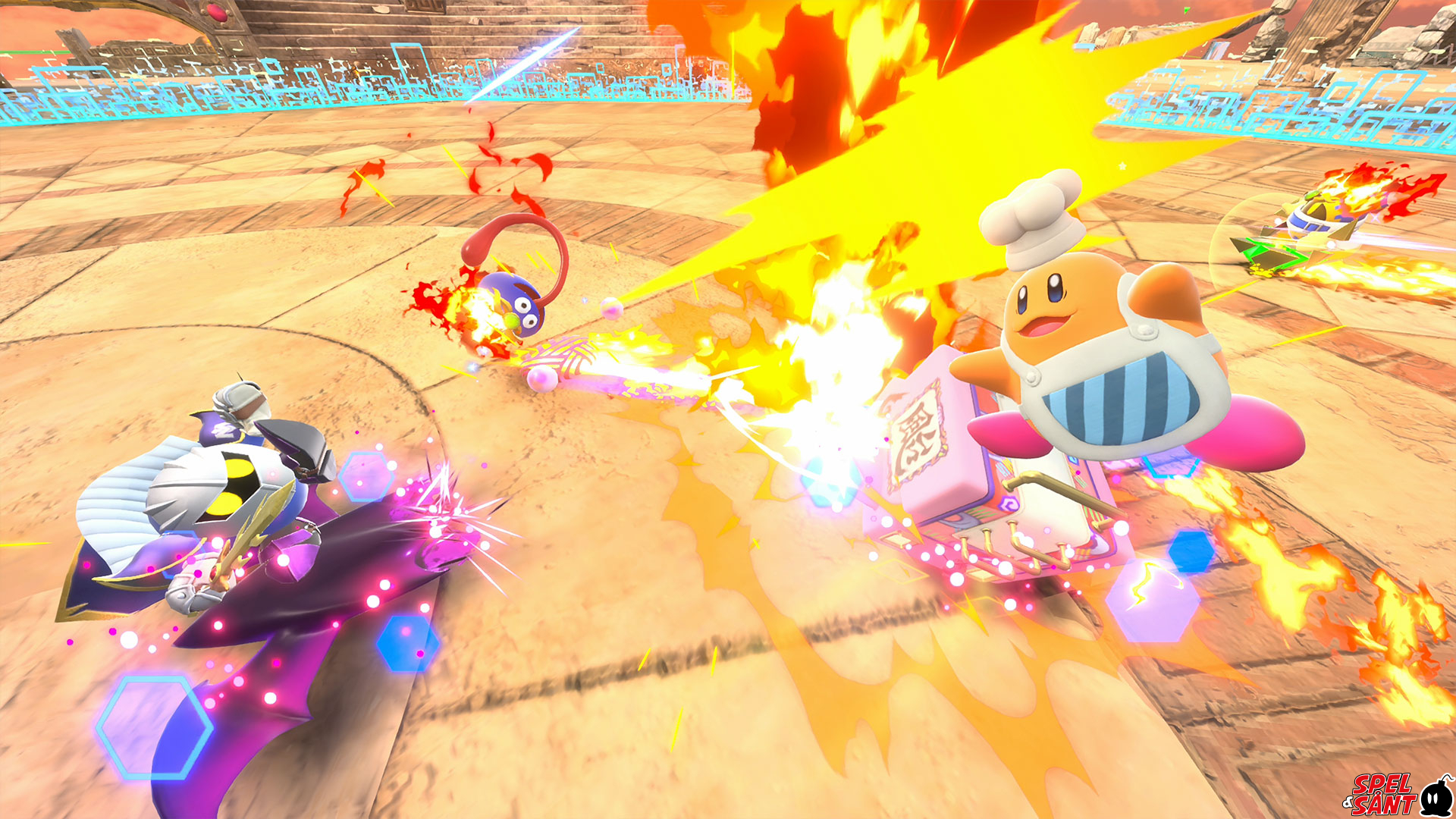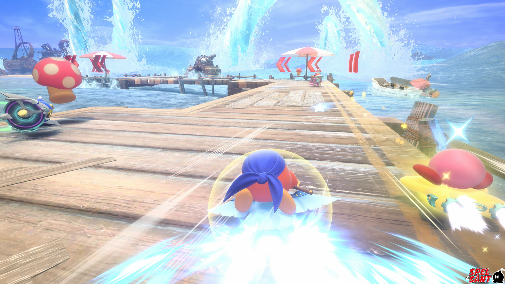 Choose from a variety of riders like Kirby, Meta Knight, King Dedede, and Magolor from Kirby’s Adventure Wii, and machines including the Warp Star, Wheelie Bike, Chariot and more. Each machine handles differently, and each rider has their own set of stats and Specials – they can also grab Copy Abilities off their foes to get an edge in the fray.