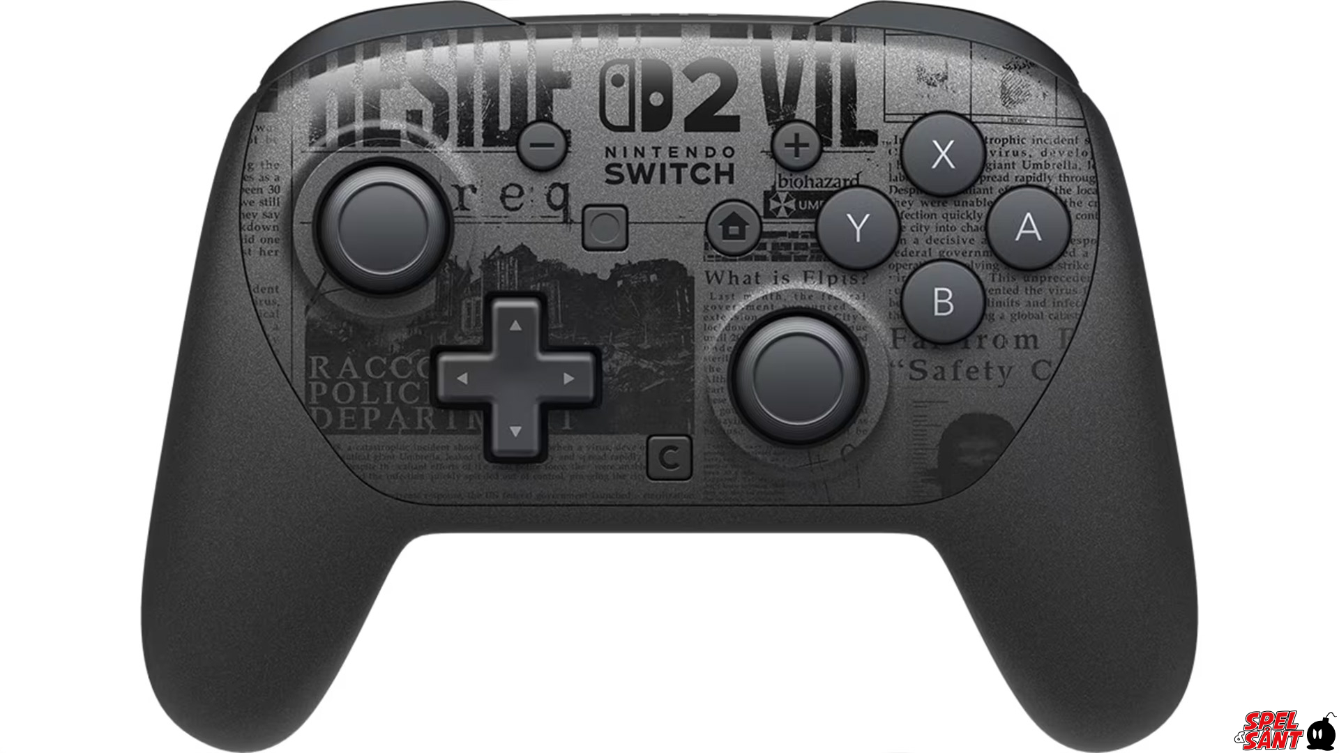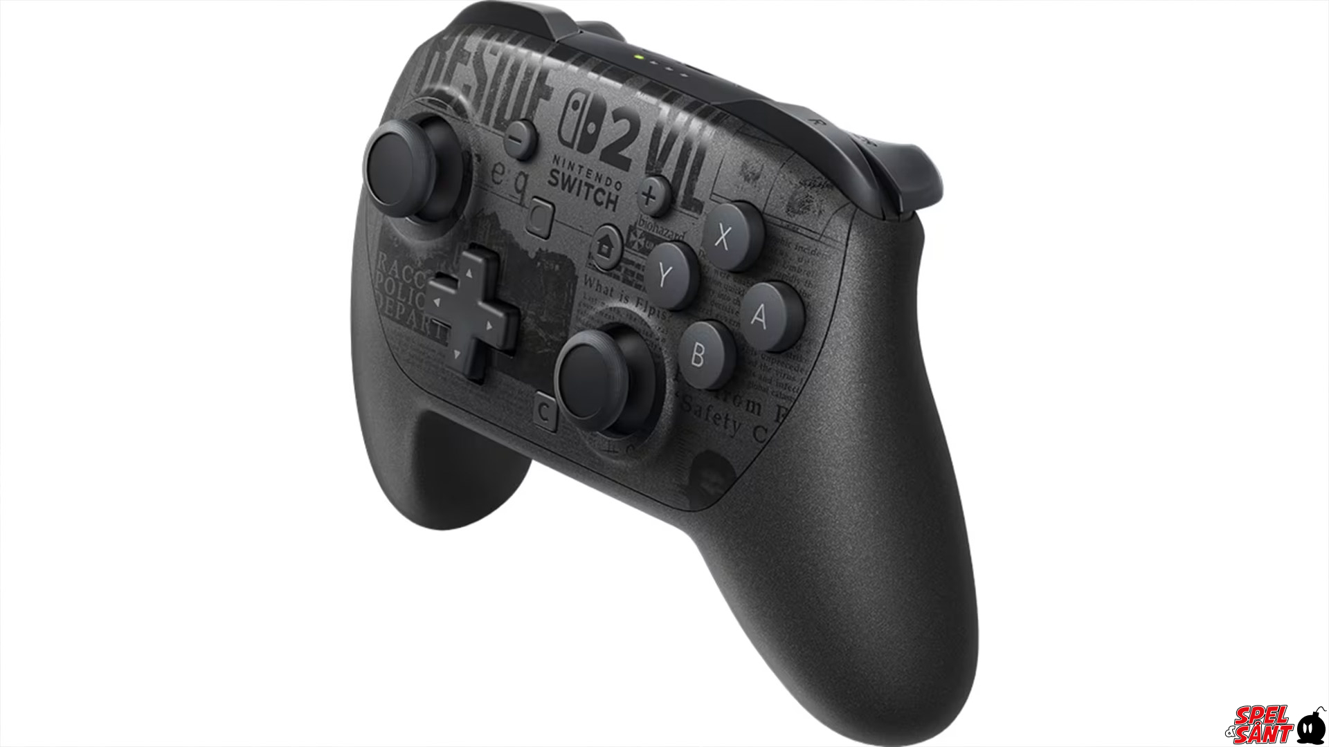 Take your gaming to the next level with the Nintendo Switch™ 2 Pro Controller Resident Evil Requiem Edition, featuring a gunmetal-black visual design with in-world newspaper articles that capture the dark and immersive atmosphere of Resident Evil Requiem.