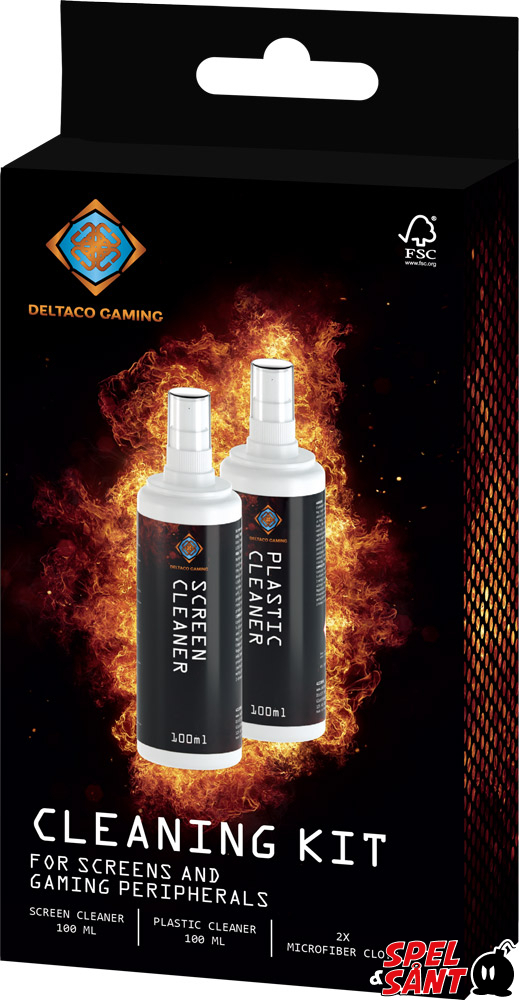 Detta rengöringskit innehåller två olika typer av rengöringsvätskor, smidigt förpackade i pumpflaskor. Den ena är avsedd för LCD/LED skärmar, och den andra är speciellt framtagen för att rengöra plastytor, perfekt för gamingtillbehör som tangentbord, möss och headsets. I kittet ingår också två mikrofiberdukar, för en noggrannare rengöring utan risk för repor.