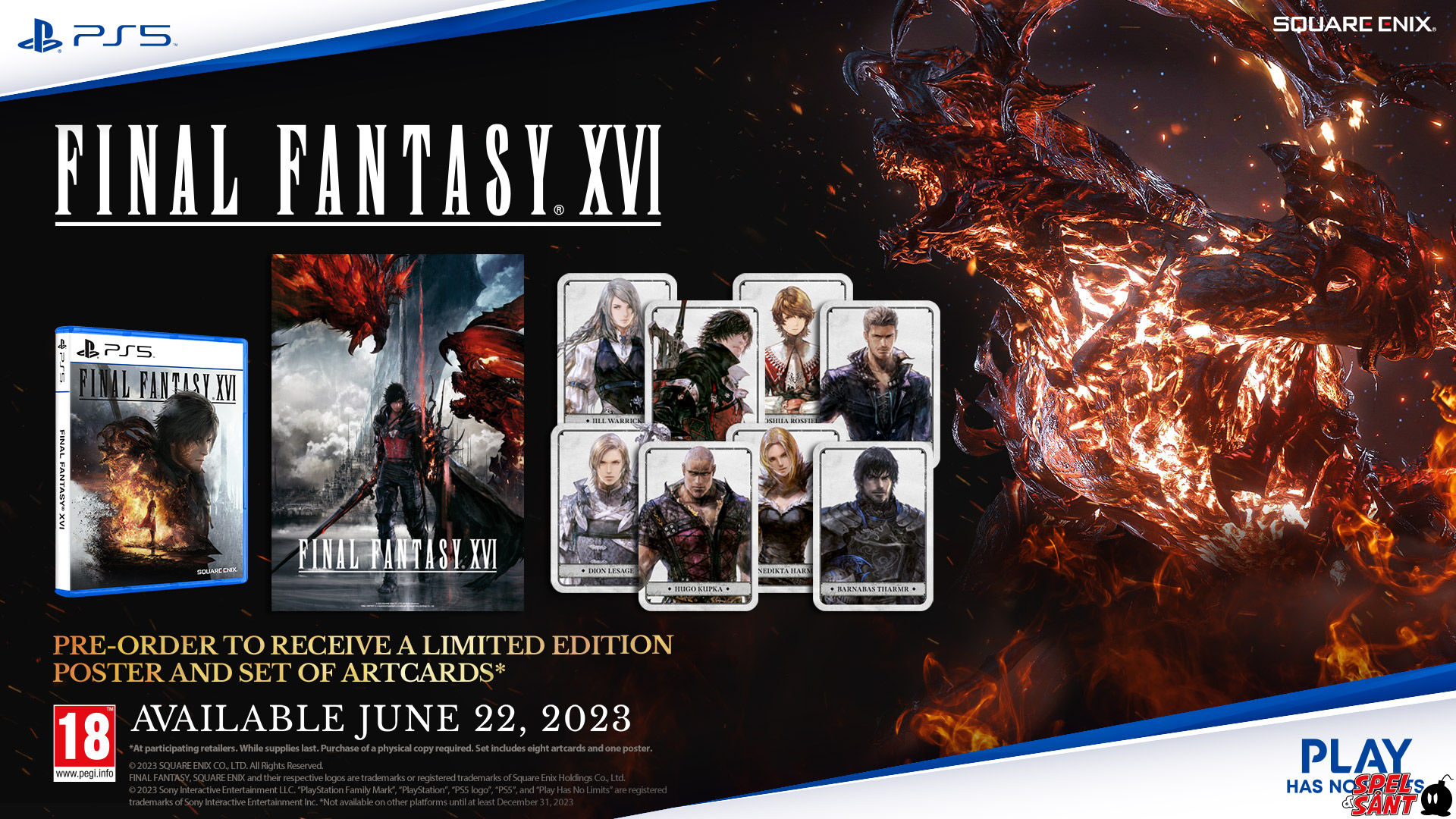 Köp Final Fantasy XVI och få en Limited Edition Poster och en uppsättning Artcards med motiv av karaktärer från spelet.