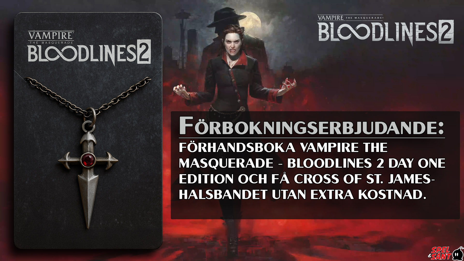 Förhandsboka Vampire the Masquerade – Bloodlines 2 Day One Edition och få Cross of St. James-halsbandet.