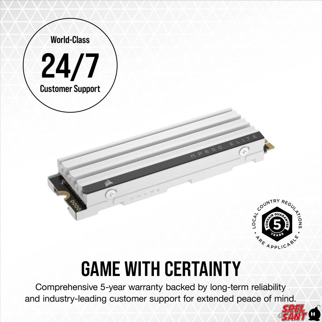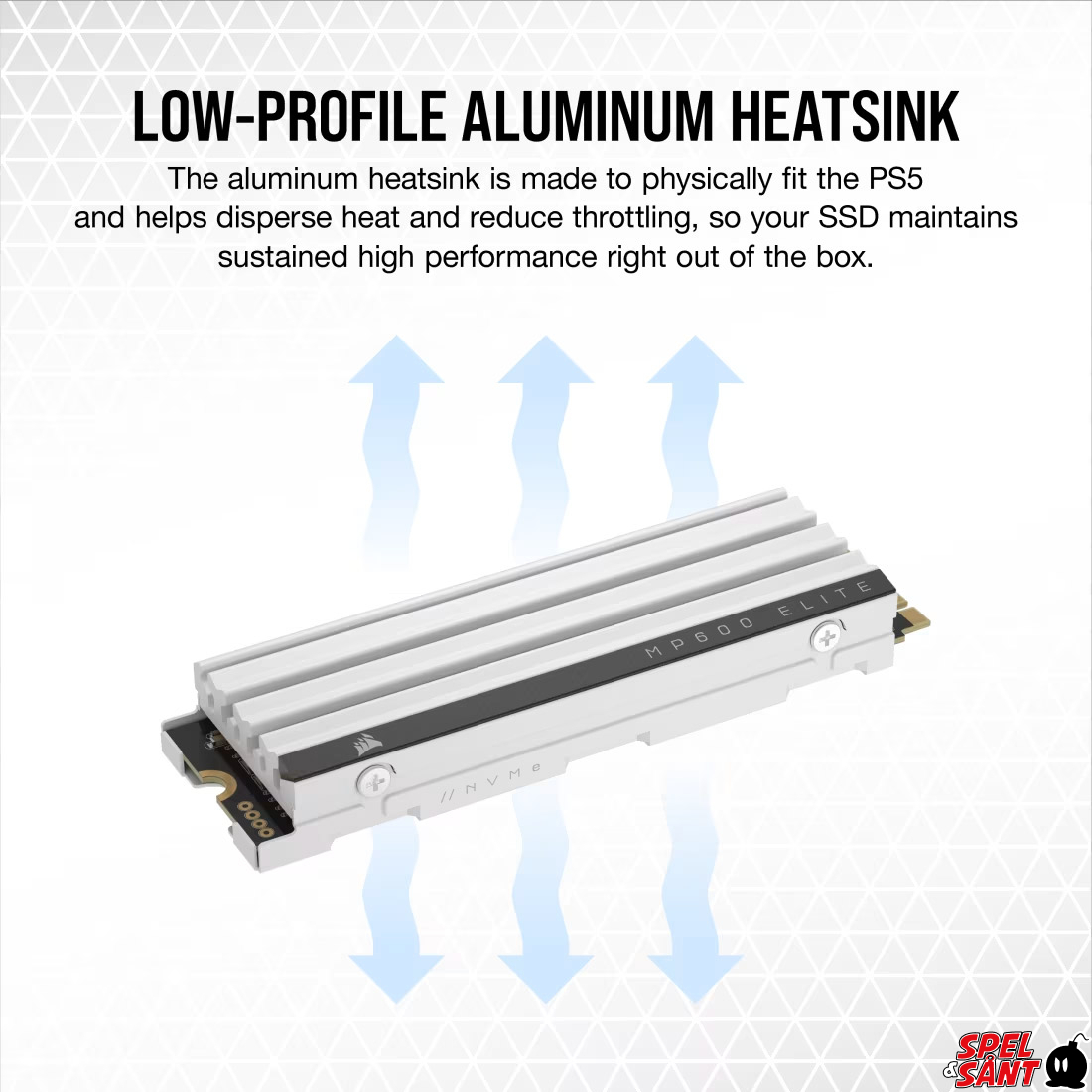 till 6 500 MB/s, så att spelfiler laddas snabbare än någonsin. M.2 2280-formfaktorn och den förinstallerade kylflänsen med låg profil gör att MP600 ELITE