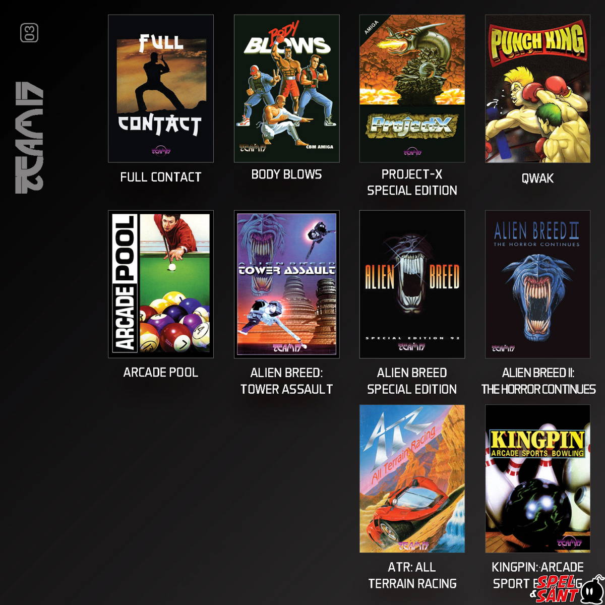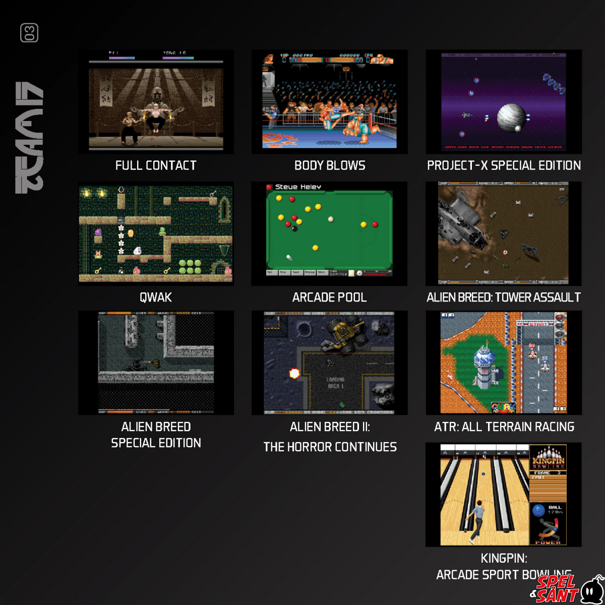 Team17 Collection 1 for Evercade brings together a diverse selection of 16-bit home computer classics first published on Amiga, including the atmospheric sci-fi shooters of the Alien Breed series, the bone-crunching fighting of Body Blows, the accessible sporting action of Arcade Pool and Kingpin, and much more!