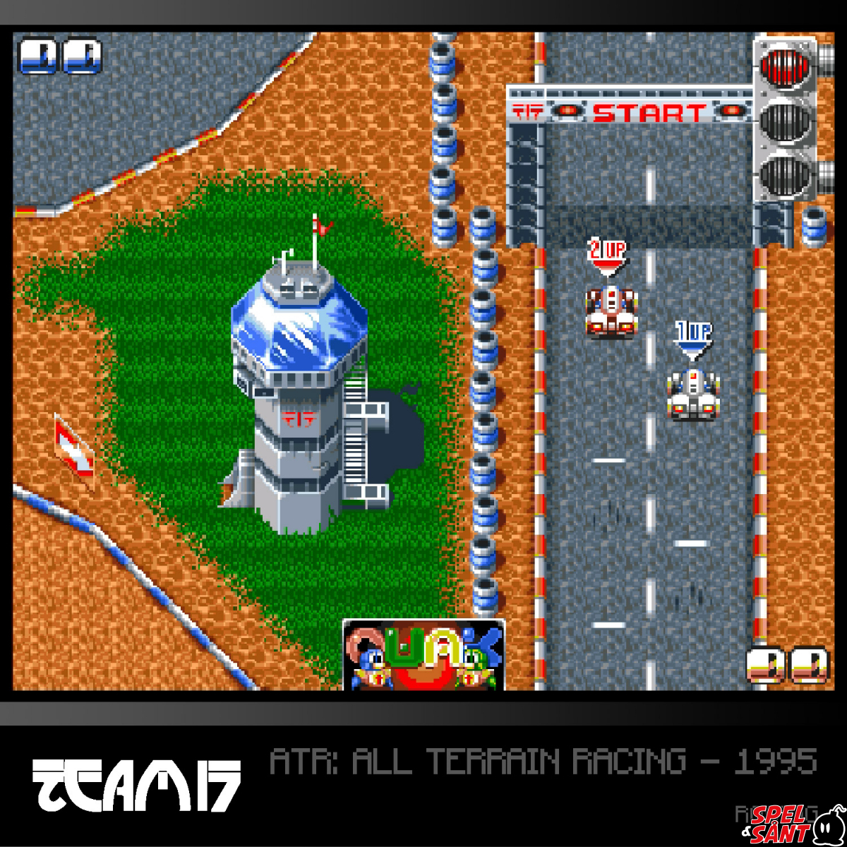 Team17's arcade-style racing game for Amiga crashes onto Evercade with style. Take on fearsome computer opponents and upgrade your car in single player, or compete against a friend in the score-based two-player mode.