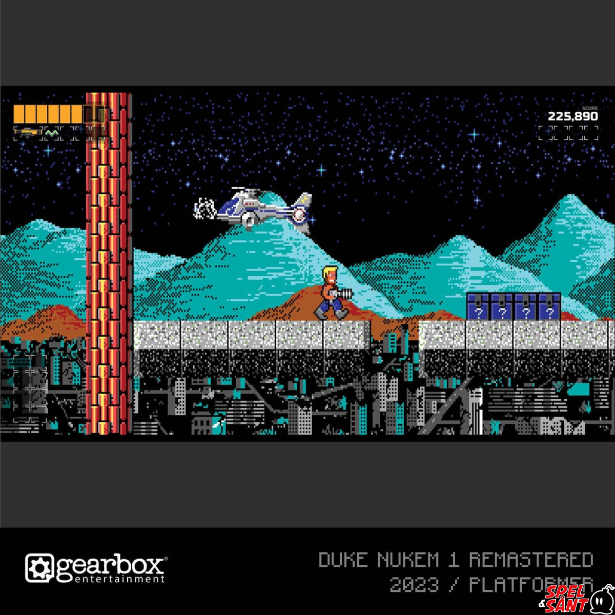 Duke Nukem's first outing, originally released in 1991 and newly remastered for Evercade, is an all-action platformer in which our hero chases down the dastardly Dr. Proton across a devastated Los Angeles and a secret moonbase... and onwards through time into the future!