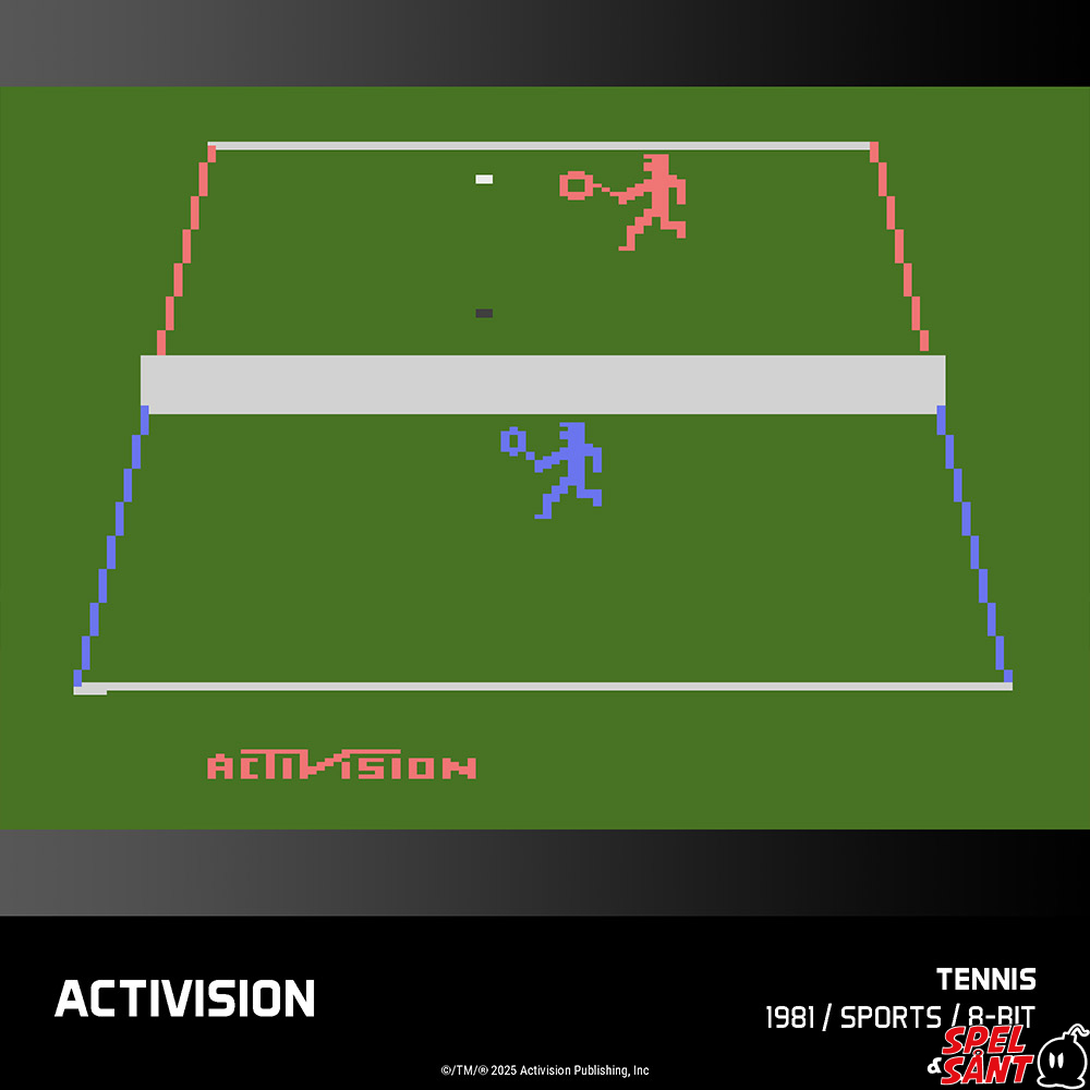 Anyone for tennis? Take on the Activision computer pro or a friend in this simple but addictive sports sim for Evercade!