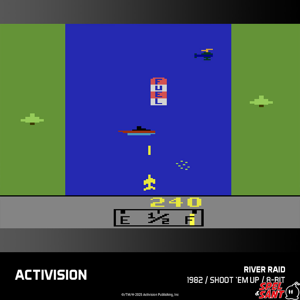 Brave the River of No Return in this Activision shoot 'em up legend for Evercade. Blast enemy tankers, helicopters, fuel depots, jets and bridges, and survive as long as you can!
