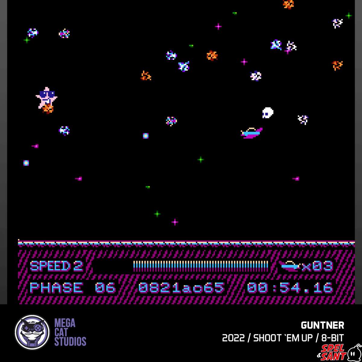 Take off for the 13th Dimension and save a sickly pet dingle! Battle enemies with your Quark Cannon and the experimental, unstable Chaos Cannon in this 8-bit shoot 'em up for Evercade.