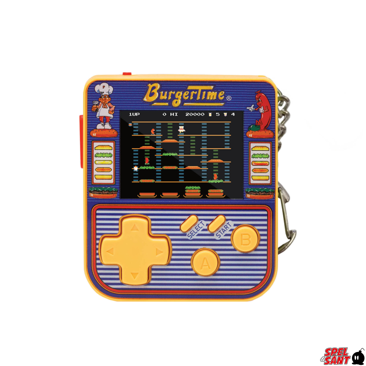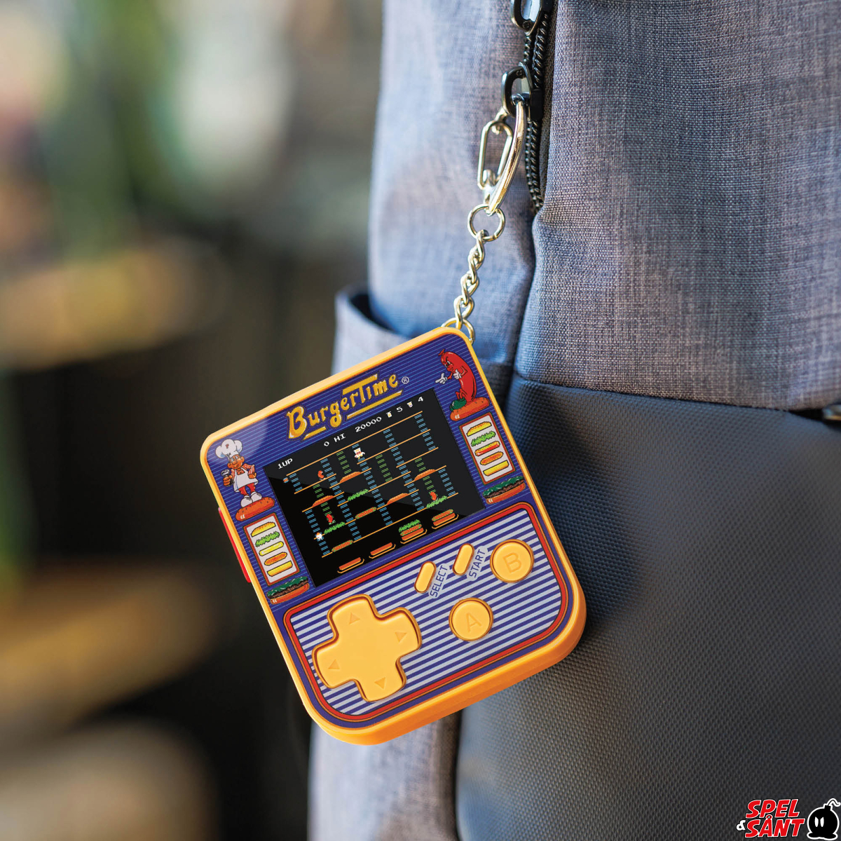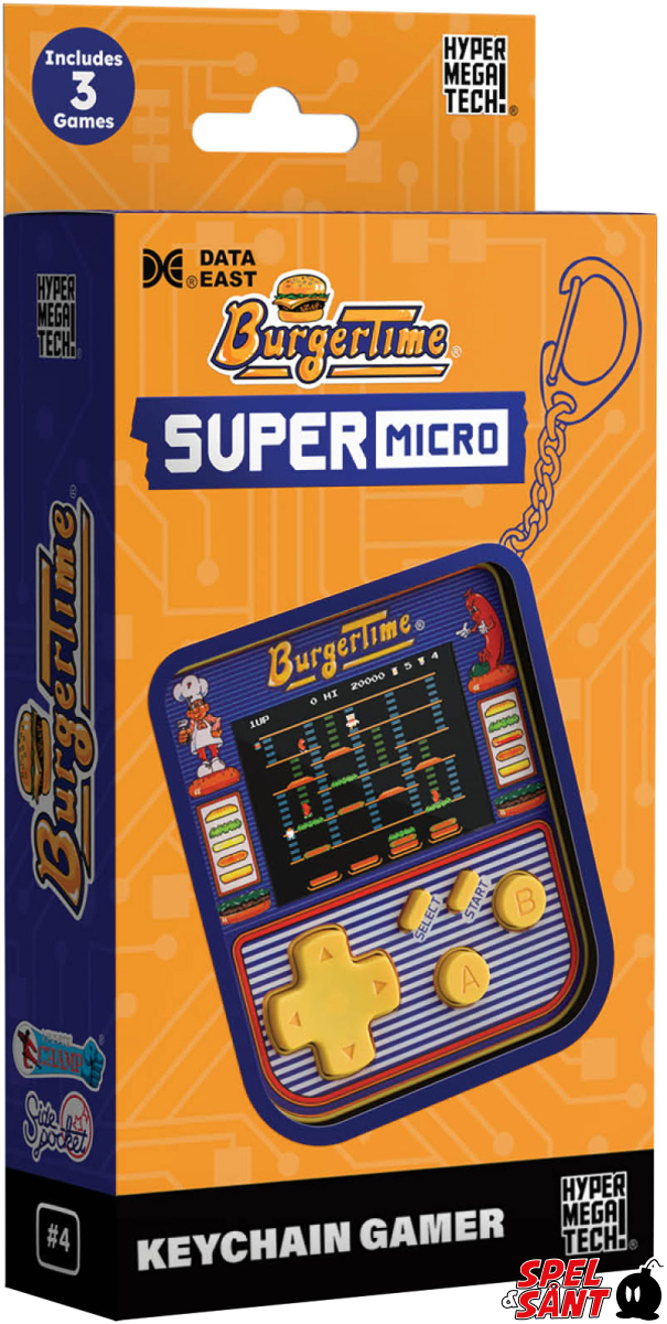 The BurgerTime® Super Micro Keychain Gamer is a great new retro gaming product from the makers of Evercade and Super Pocket! This retro game keychain is small enough to go anywhere and features three classic hits from Data East® – BurgerTime®, Karate Champ® and Side Pocket!! It makes the perfect companion for your keys and the perfect gift for any gamer!
