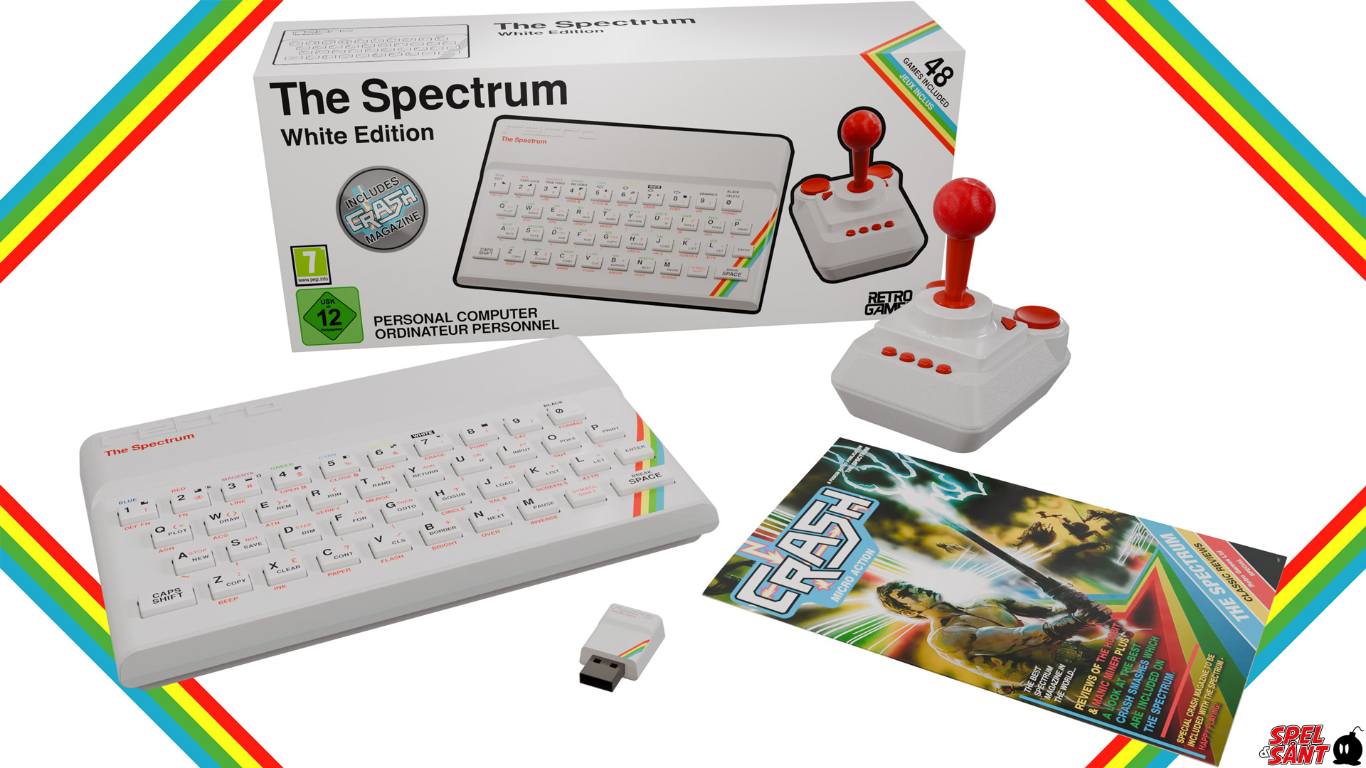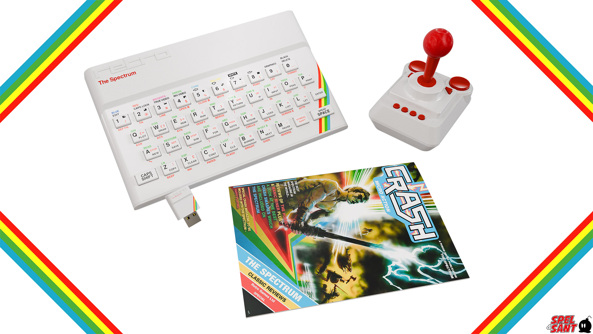A streamlined version of The Spectrum Collector’s Edition, featuring The Spectrum in an all-white tribute to the iconic one-millionth ZX Spectrum. Includes The Spectrum, THEJOYSTICK 8-button joystick, THEMICRODRIVE USB Stick, and CRASH magazine.