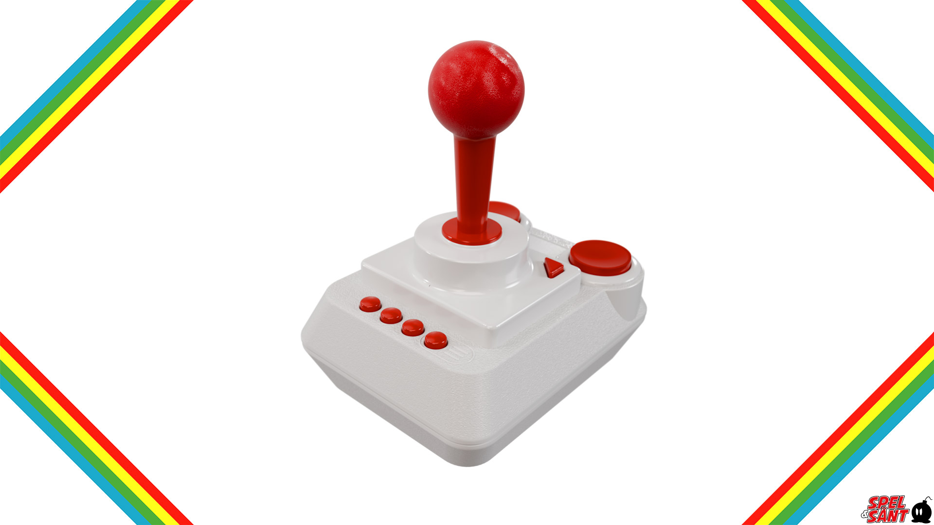 Featuring a new microswitch design and a striking white and red exterior, the short travel stick responds with a tactile click for positive direction changes. The two large independent fire buttons are also switched. Six additional buttons allow many game keyboard functions to be mapped to THEJOYSTICK for easy armchair gaming, assisted by the generous 1.8m cable.