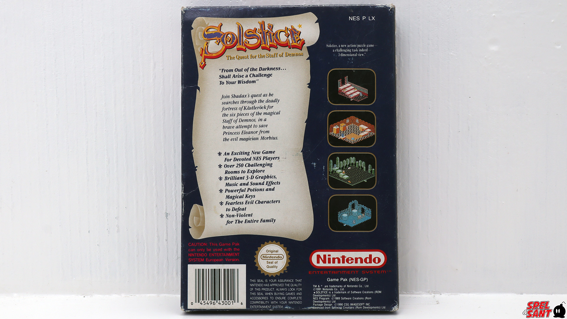"From Out of the Darkness... Shall Arise a Challenge To Your Wisdom" Join Shadax's quest as he searches through the deadly fortress of Kastlerock for the six pieces of the magical Staff of Demnos, in a brave attempt to save Princess Eleanor from the evil magician Morbius! Over 250 challenging rooms to explore. Brilliant 3-D graphics, music and sound effects. Powerful potions and magical keys. Fearless evil characters to defeat. Non-violent fun for the entire family!