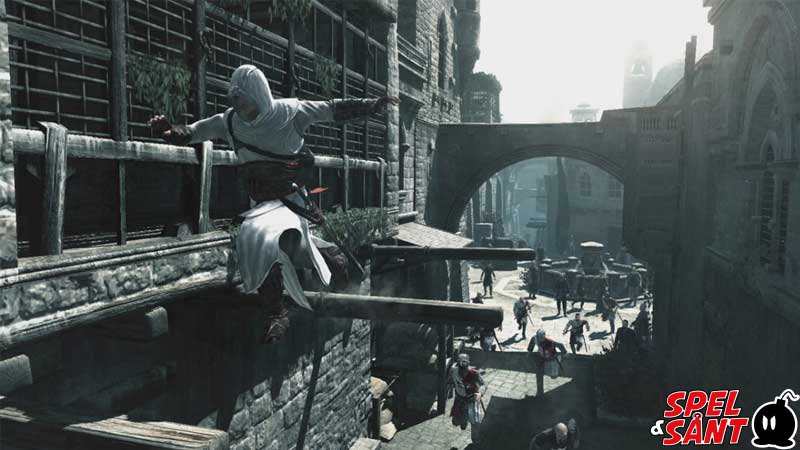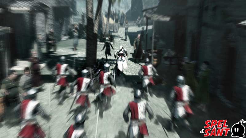 • Assassin's Creed ger total frihet att eliminera dina mål var , när, och hur som helst. Förfölj din fiende genom detaljerade och historiskt korrekta, öppna miljöer. Klätta uppför byggnader, Sitt upp på hästar, smält in i folksamlingar. Gör vad som krävs för att uppnå dina mål.