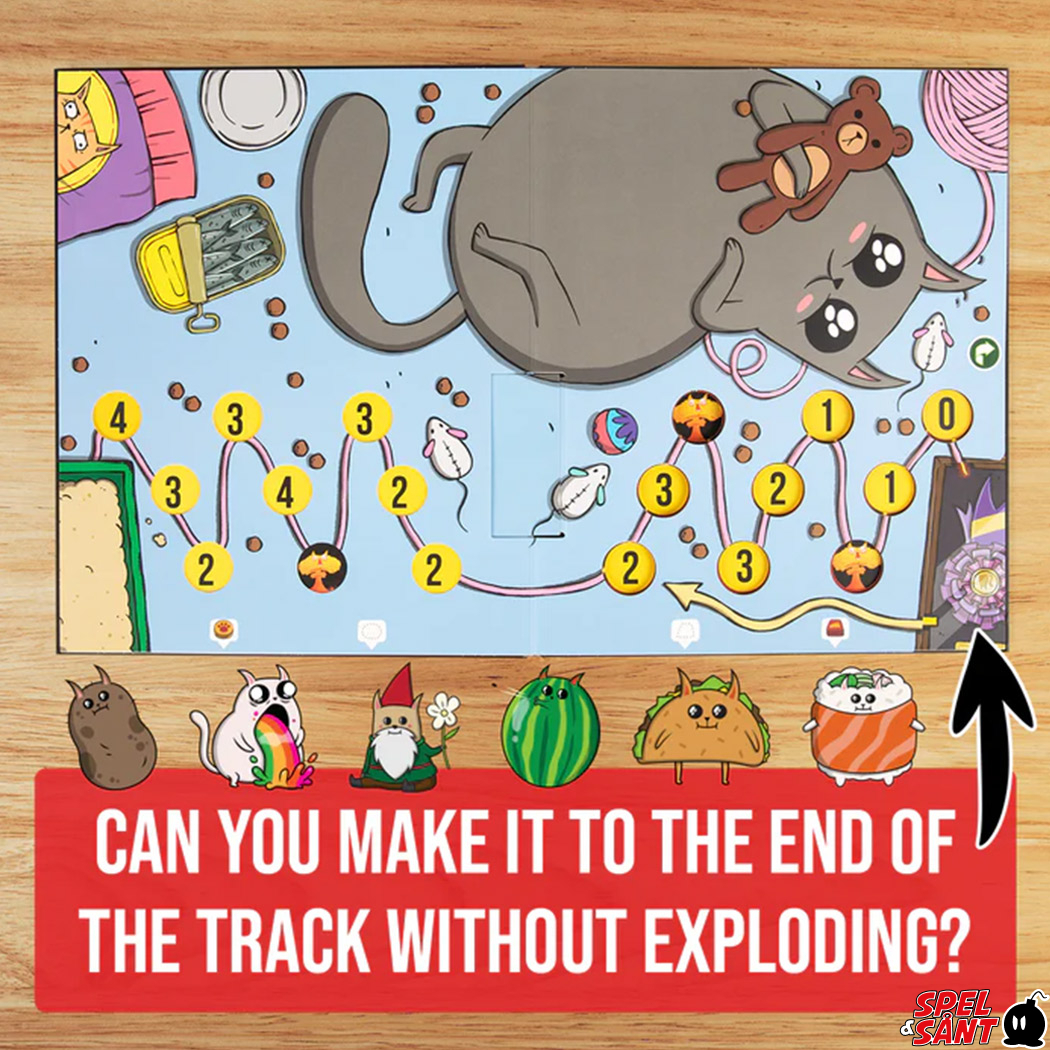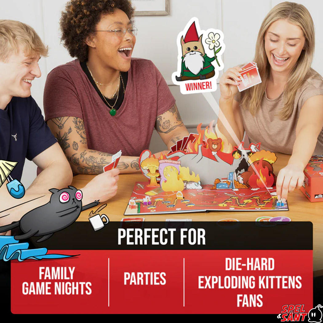 Your goal is to make it to the end of the board without landing on the Exploding Kitten. To do that, you'll play cards and plot strategies to sabotage your opponents. But don't get too cocky because one wrong move can cause the board to flip. This completely transforms the board to reveal a new path where every move could be your last. You have to think fast, form alliances, play smart, and avoid the Exploding Kittens at all costs.