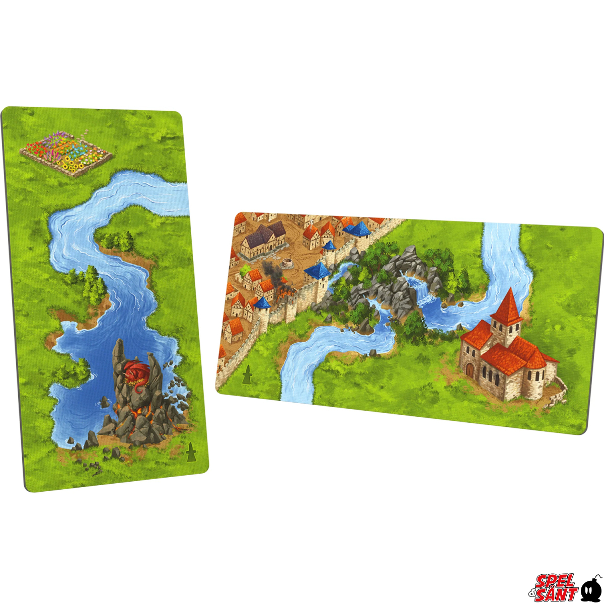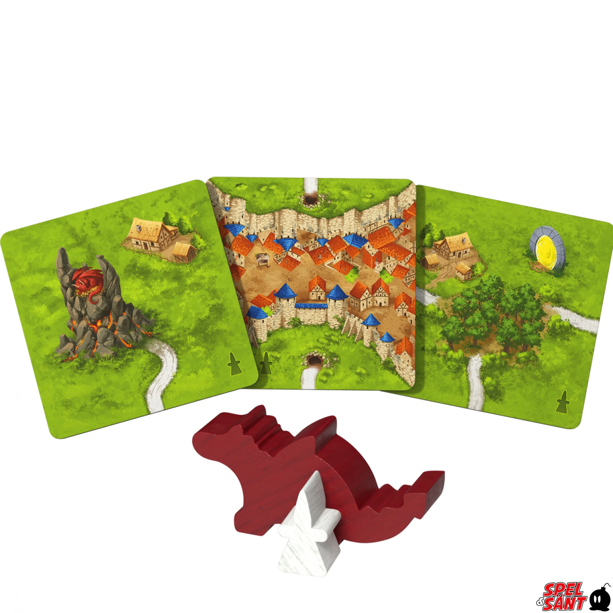 I denna expansion av Carcassonne hotar en hungrig drake landsbygden.