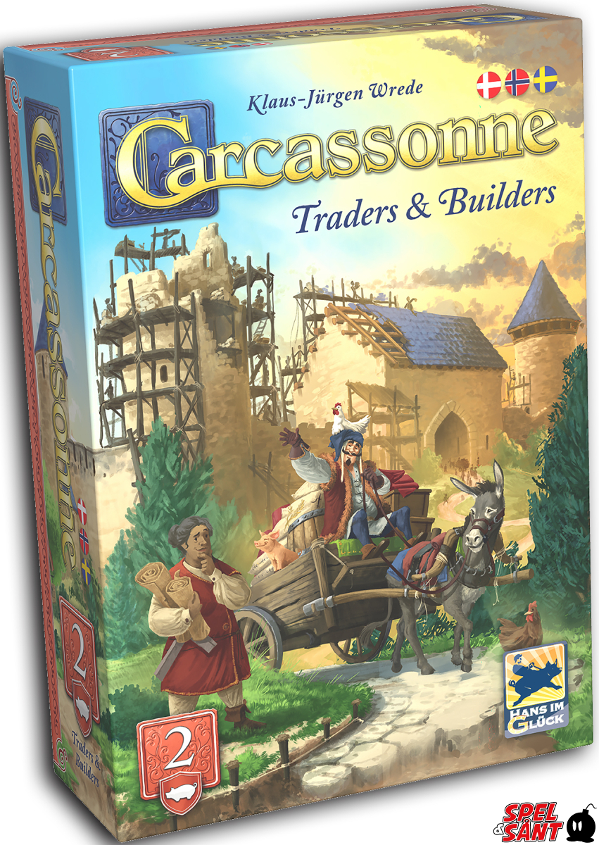 Den andra expansionen till det lyssnade spelet Carcassonne. I denna expansion av Carcassonne anländer köpmän och byggmästare till städerna. Samla ihop flest varor och skicka ut dina grisar på fälten för att tjäna mer poäng. Byggmästaren skyndar på arbetet med dina vägar och städer.