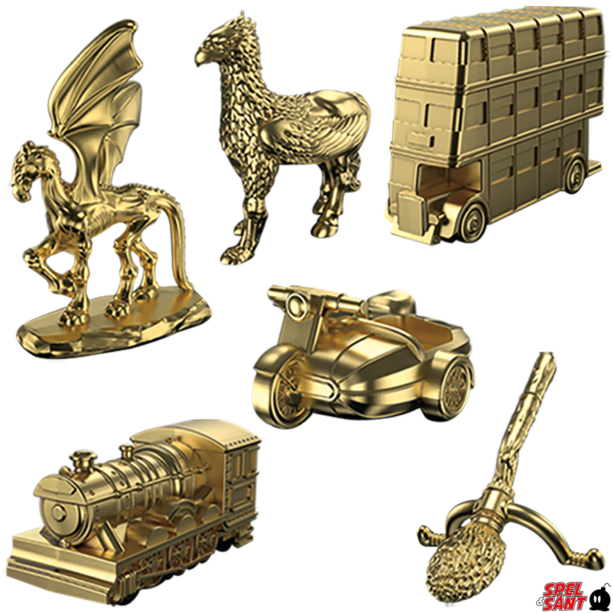 Travel around the board with one of 6 enchanting transportation-themed golden tokens: Hippogriff, The Knight Bus, Hogwarts Express, HAGRID’s Motorbike, Thestral, and Firebolt