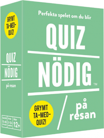 Quiznödig ”På resan” är ett kul och avspänt spel med 220 lite roligare, skönare och gladare frågor som passar perfekt när man är ledig – på semestern eller resan. Ett spel med humor och glimten i ögat – garanterat utan sömniga frågor om gamla franska kungar och kemiska formler.