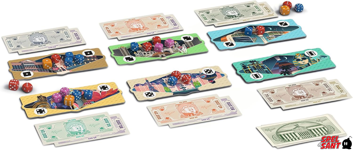 Hey, high rollers! Ready to visit as many casinos as possible to pocket the most money! Place your dice cleverly to try and win as much cash as possible right under your opponents' noses. Are you prepared to risk everything? Everything can change right up to the last throw!