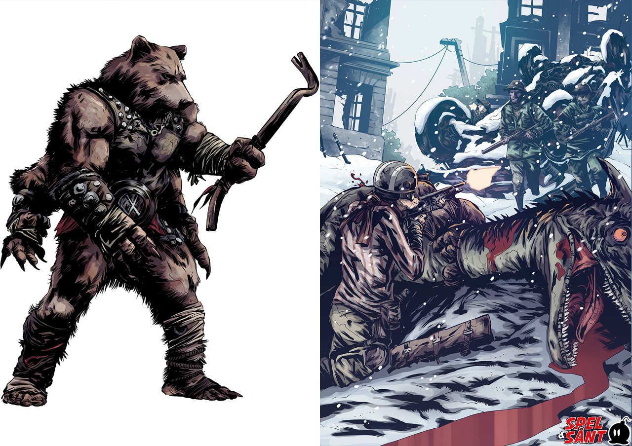Dörren till laboratoriet gled igen och stängdes med ett pysande ljud. Striden var över och den kortvuxne mannen torkade bort en fläck grönaktig vätska från ansiktet. Skenet från de uråldriga lysremsorna i taket flackade och kastade ett blekt ljus över de fallna gestalterna på golvet framför honom. Mannens två medhjälpare – den ena väldig och mekanisk, den andra skugglik – inväntade nya instruktioner.