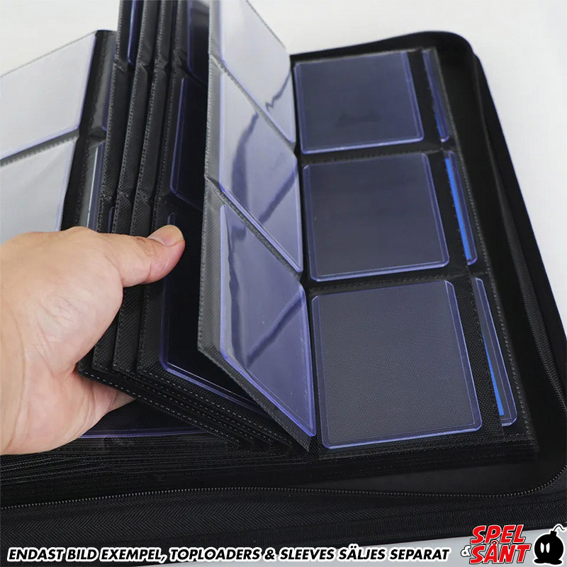- Rymmer totalt 216st TCG-kort i toploaders av standardstorlek 3x4" 35pt