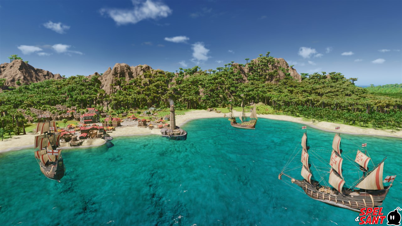 Develop production chains connecting multiple islands and create complex trade routes across the Caribbean, covering the ever-growing needs of the respective cities. Make use of the detailed sea map to avoid stormy weather regions, cliffs or shallow waters. Fulfill tasks for your nation’s viceroy, earning more fame to unlock town buildings, ships and more. Conquer the cities of rival nations or hunt down their fleets with a letter of marque while also keeping a keen eye out for pirates and other privateers.