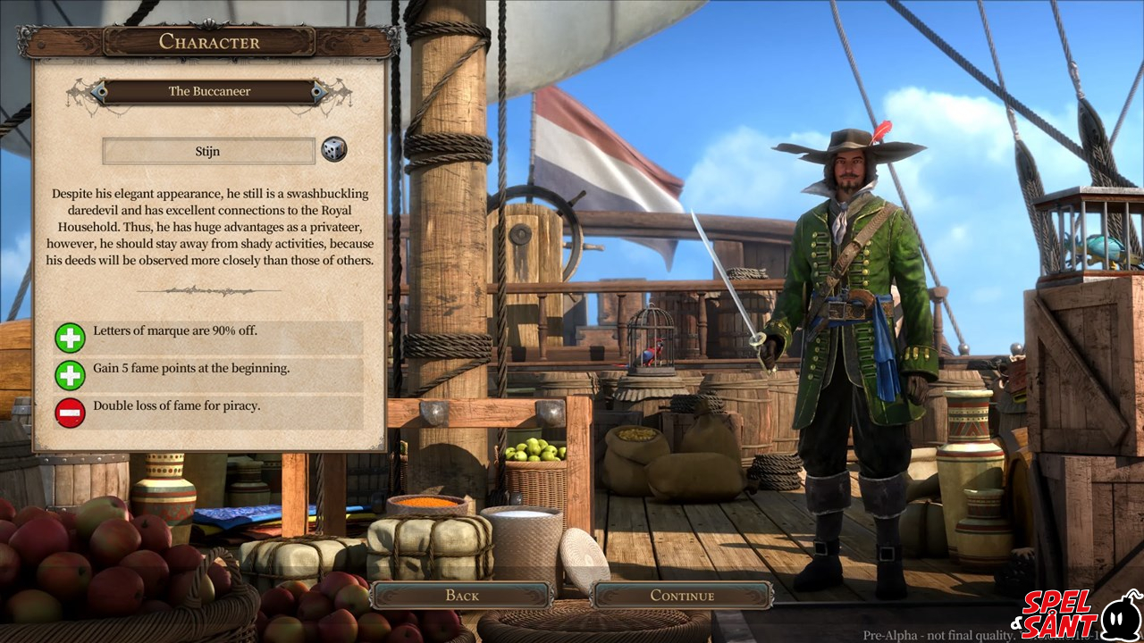 Appoint a leader for your adventure from four different character classes: The Explorer, the Merchant, the Buccaneer and the Pirate – each providing their own advantages and disadvantages.
